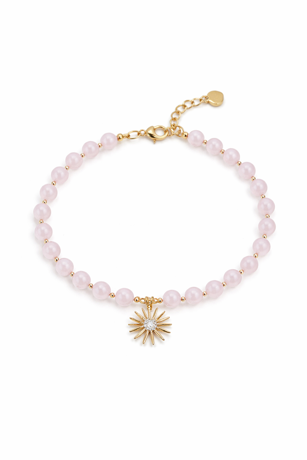Кольє “Рожеве Різдво” — це витончена прикраса, створена для тих, хто цінує ніжність, жіночність та святковий блиск. Аксесуар поєднує натуральність рожевого кварцу та елегантність золотого сяйва, роблячи його ідеальним подарунком або доповненням до образу на кожен день і особливі події.
