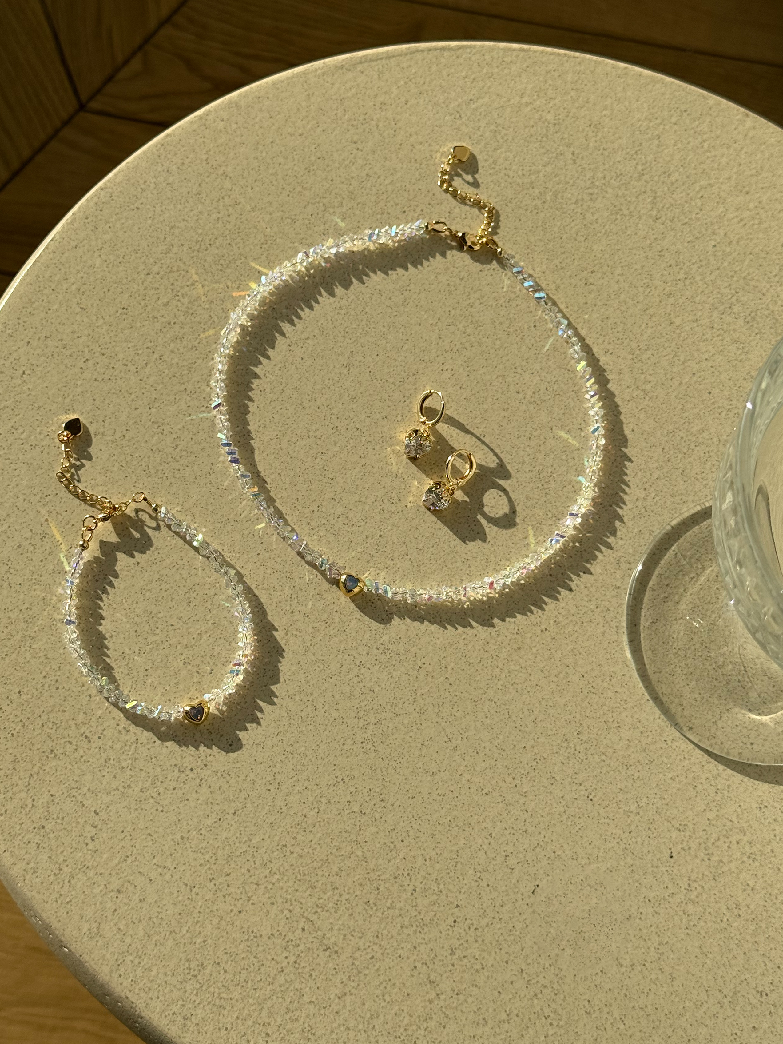 Кольє «Shiny Chic» — елегантна прикраса з ювелірного скла з яскравим сяйвом. Позолочене покриття на медсплаві додає теплого блиску, а застібка-карабін із подовжувачем 5 см забезпечує комфортну та зручну посадку на шиї.