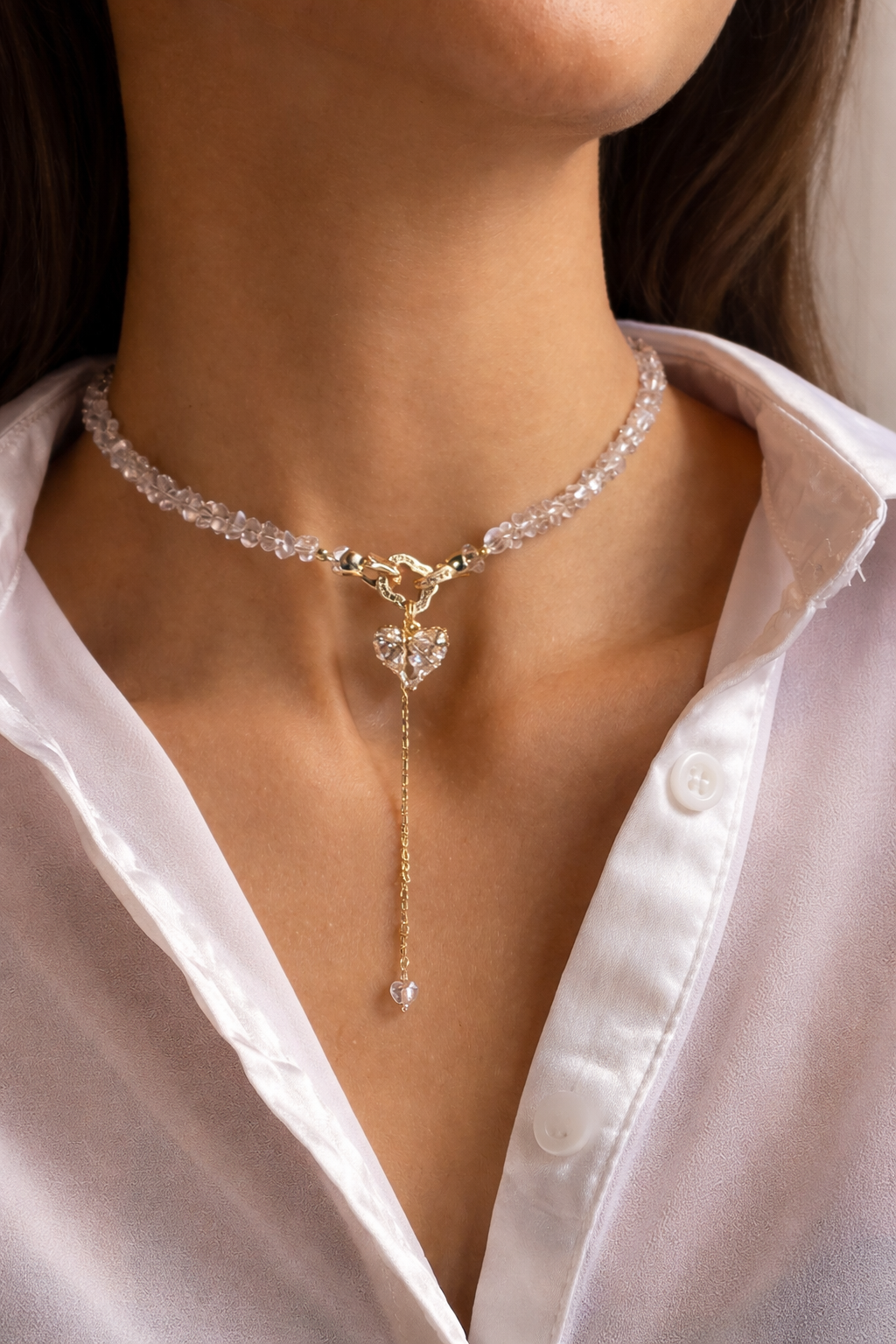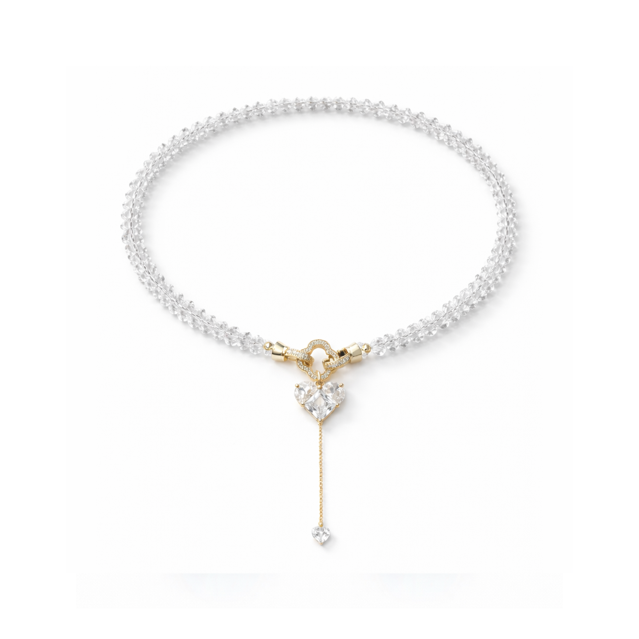 Кольє “White Clover” — елегантна прикраса, що поєднує в собі ніжність і витончене сяйво. Створене з ювелірного скла, воно красиво грає на світлі, додаючи образу легкості та святковості. Позолочені елементи підкреслюють розкіш і теплоту відтінків, а підвіска у формі конюшини символізує удачу й гармонію.
