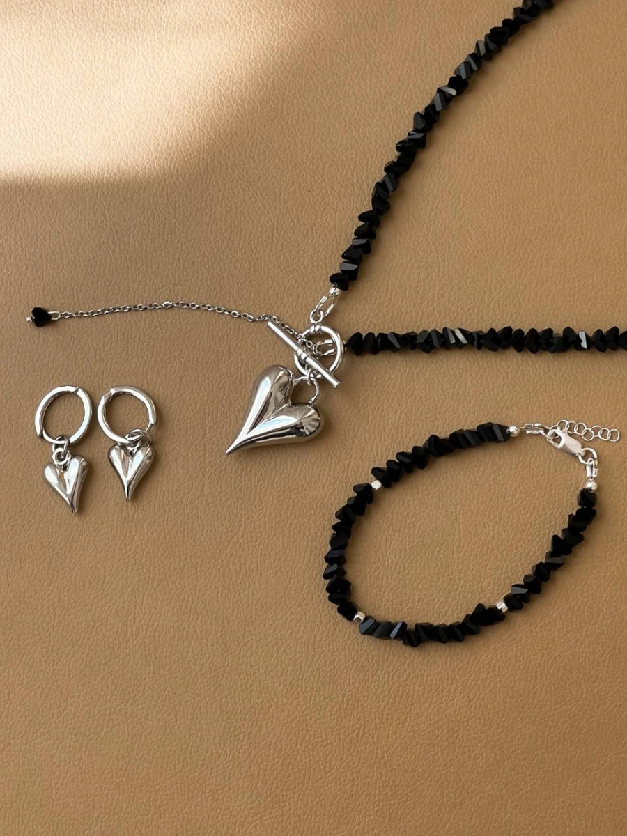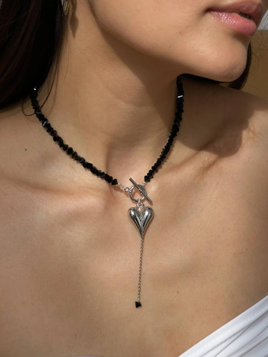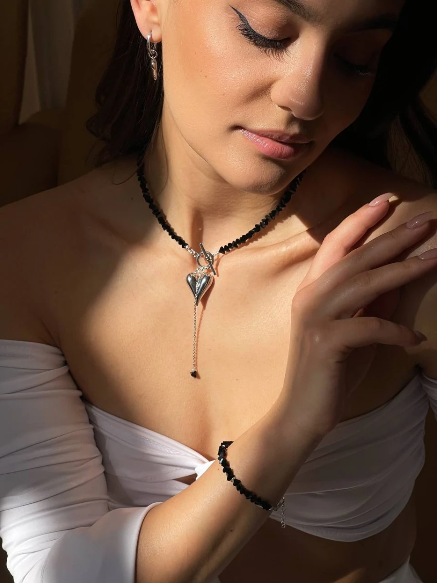 Кольє "Black Swan" — втілення таємничої елегантності та витонченого стилю. Поєднання ювелірного скла та медсплаву зі срібним покриттям створює вишуканий акцент для вашого образу. Ідеальний вибір для особливих моментів і сміливих стильних рішень.