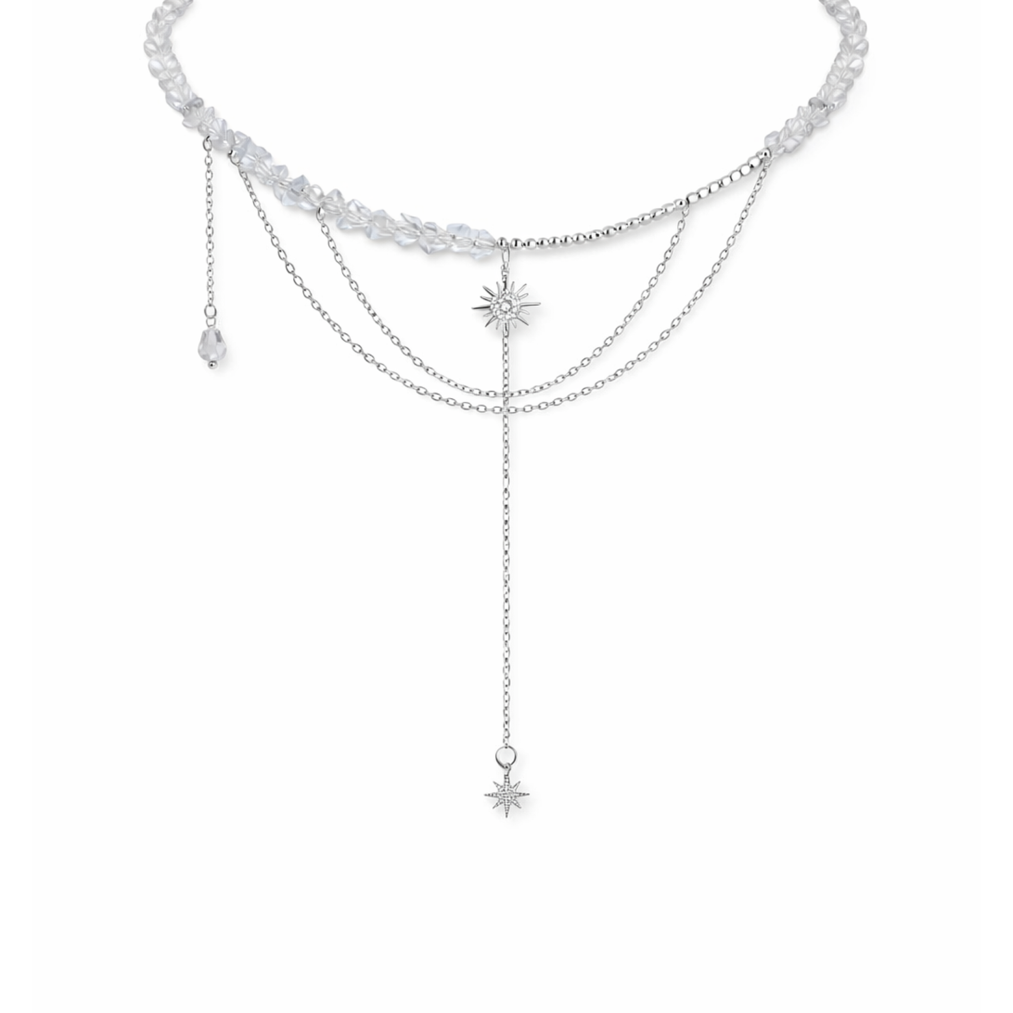 Кожен елемент цього кольє виготовлений з високоякісного кришталевого скла, яке має дивовижну прозорість та яскравість. Ідеально підходить для вечірніх виходів або як стильний акцент у повсякденному образі.