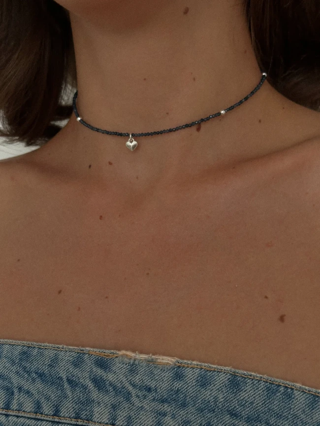 Оберіть це кольє з синім сапфіром і серцем зі срібла, щоб виразити свою неперевершенну красу та унікальність.