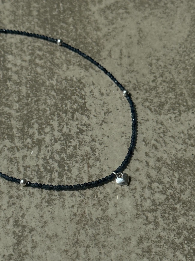 Кулон у формі серця зі срібла надає цій прикрасі романтичний акцент та символізує безмежну любов та стійкість. Натуральний синій сапфір, зі своєю глибокою, захоплюючою гамою кольорів, дарує цьому кольє неперевершену красу та благородство.