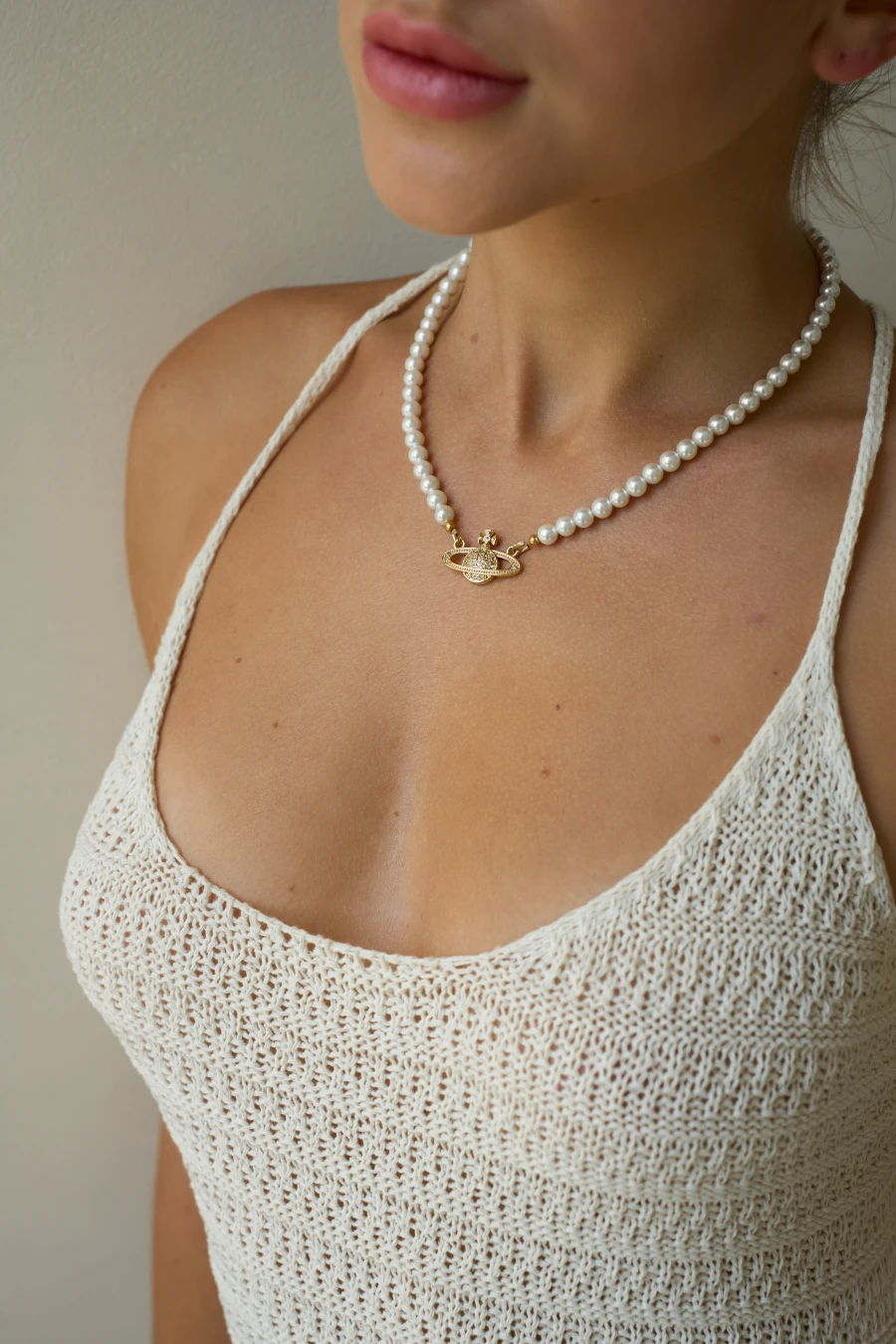 Кольє "Cosmo Shine" — елегантний аксесуар, який додає блиску будь-якому образу. Виготовлене з майорки, медсплаву, покрите позолотою та декороване фіанітами, це кольє поєднує стиль і вишуканість. Застібка-карабін і 5 см подовжувач дозволяють зручно регулювати довжину, забезпечуючи ідеальну посадку.