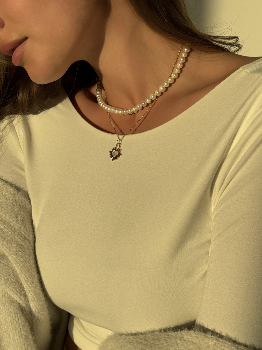 Чарівне кольє "Fabulous" стане вишуканим доповненням до вашого образу. Виготовлене з високоякісних матеріалів - перлів, медсплаву, позолоти та перламутру - воно підкреслить вашу красу та елегантність.
