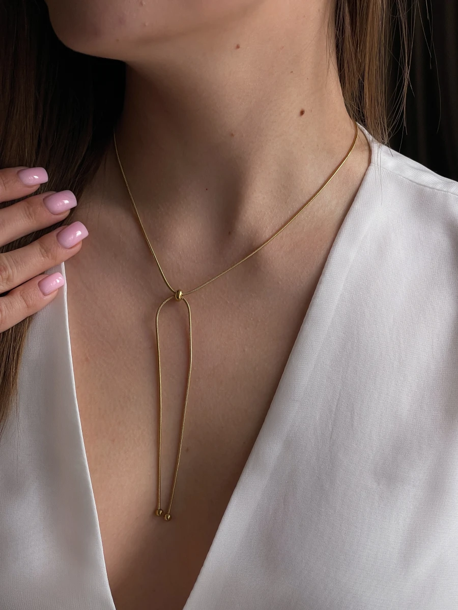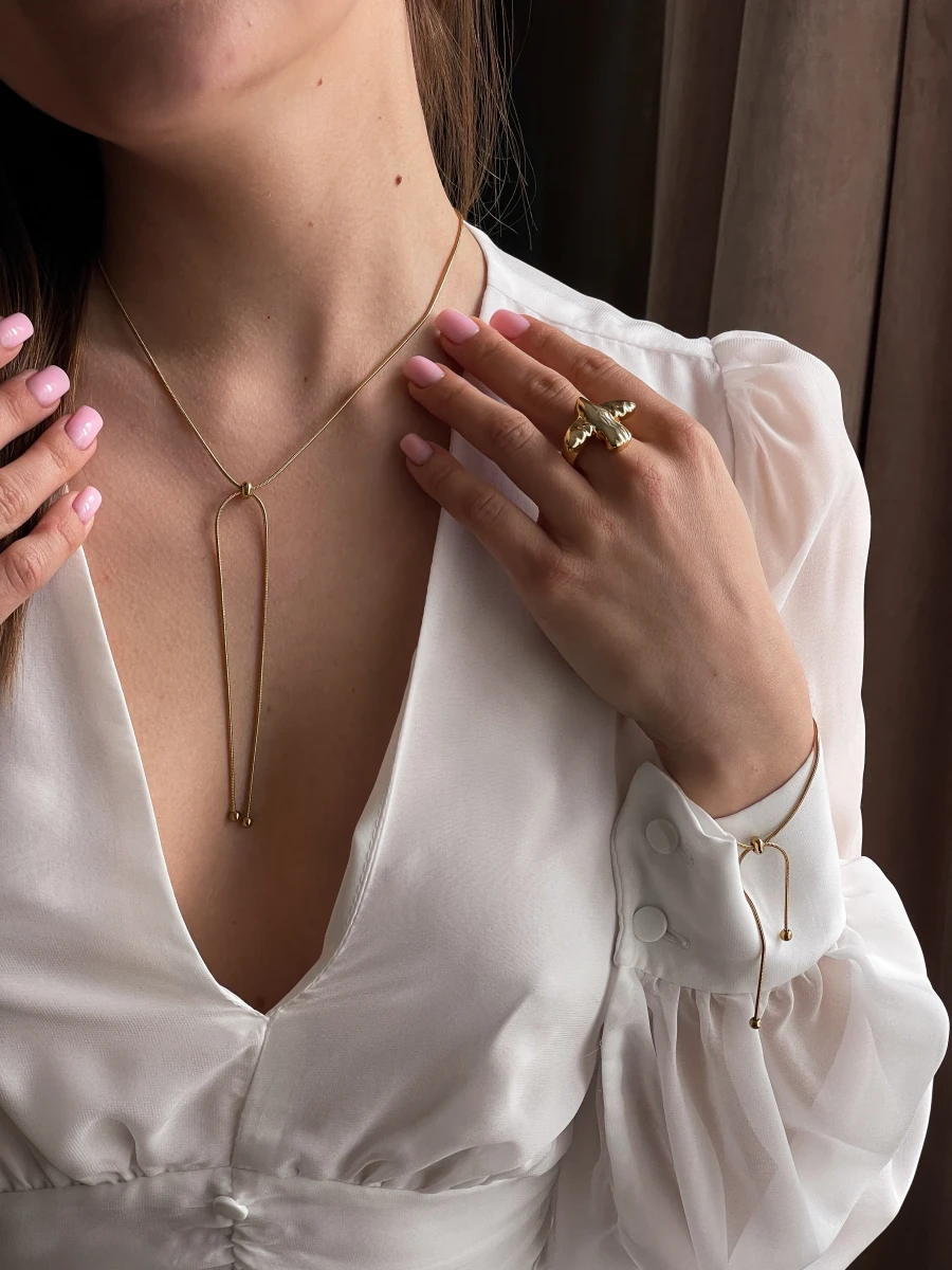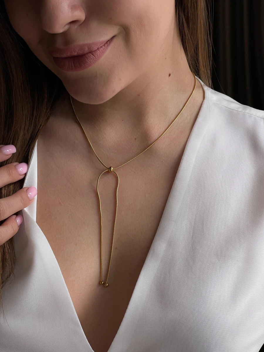 Завершують цей вишуканий образ позолочені бусини на кінцях кольє, які додають йому додаткового блиску та шарму. Кольє "Goldlace" ідеально пасує до різних образів, від повсякденних до вечірніх, і створює чарівний акцент, підкреслюючи вашу неперевершену грацію та стиль.