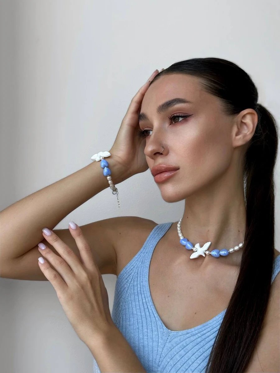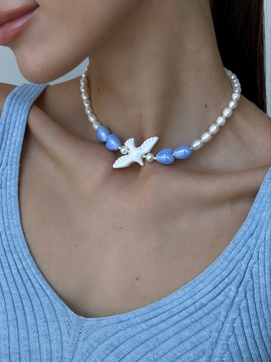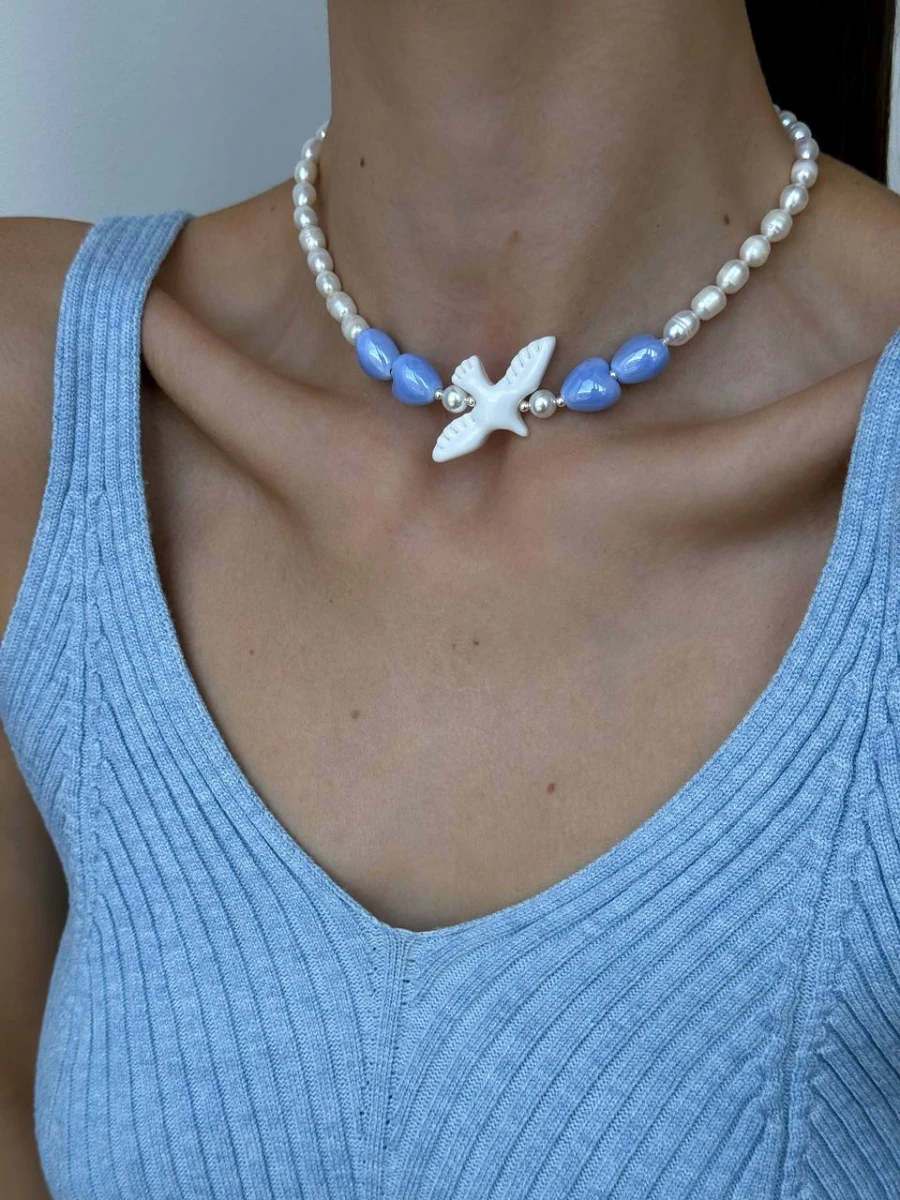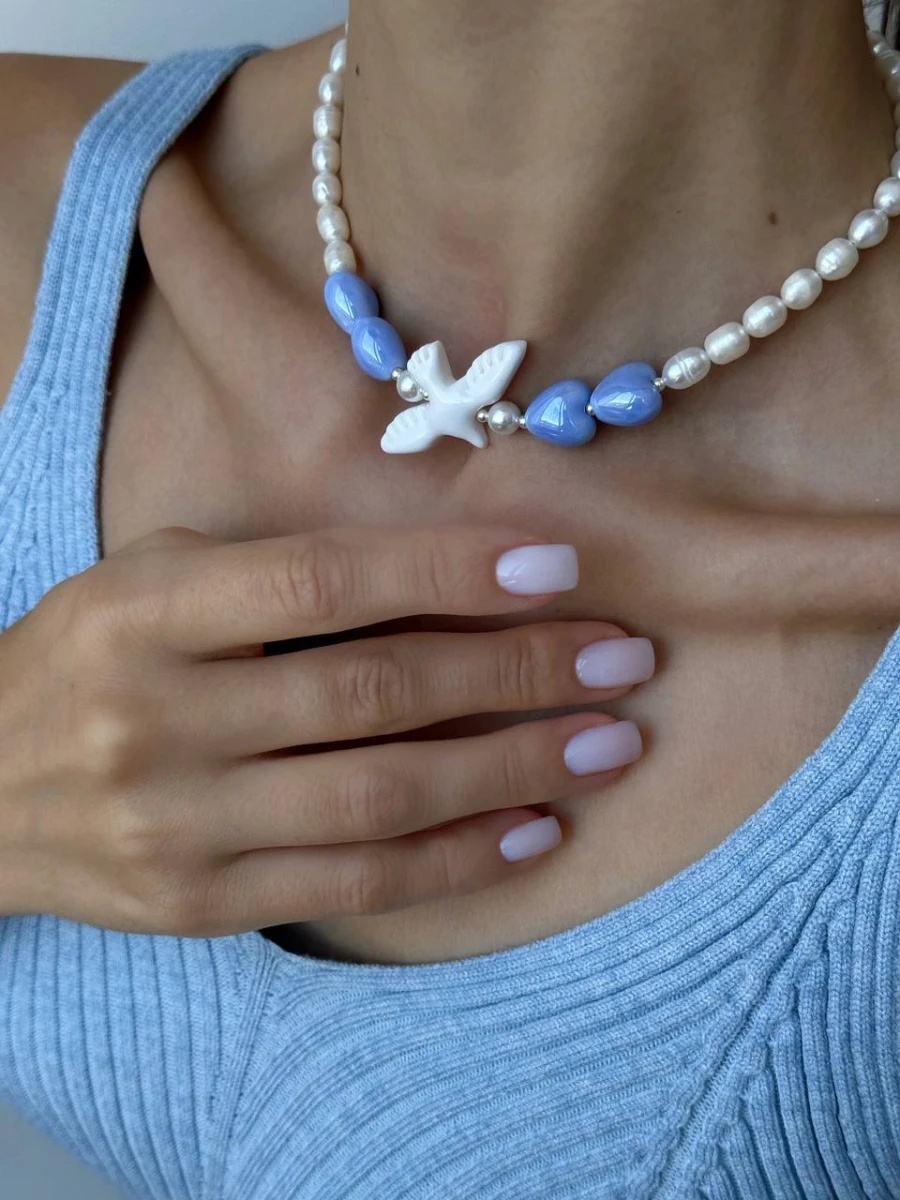 Кольє "Горлиця Світанку" - Унікальне кольє, створене вручну з Високоякісних перлин, витончених керамічних сердець та яскравих елементів з полімерної глини. Кожна деталь цього прикрасу виконана з любов'ю та увагою до найдрібніших нюансів. Кольє додасть вашому образу ніжності, вишуканості та індивідуальності.