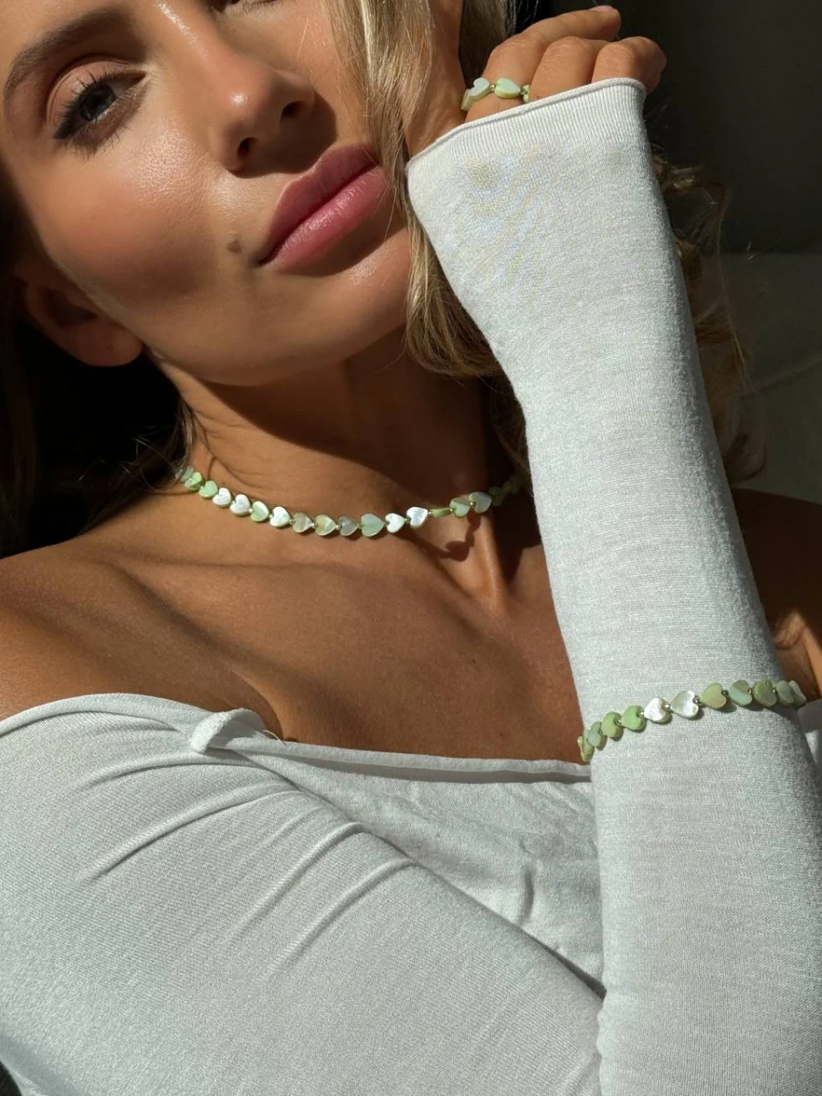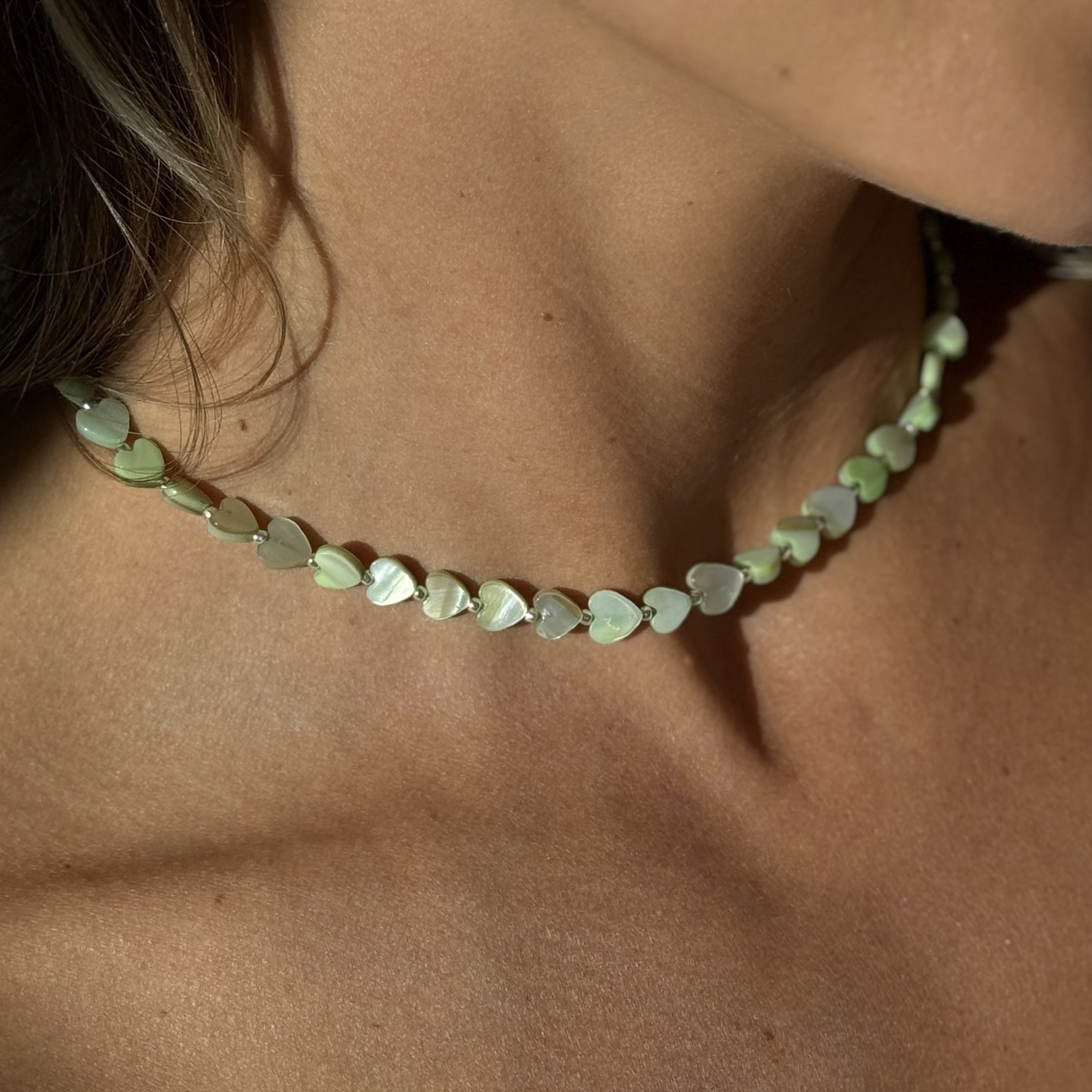 Це колье – втілення витонченості та елегантності. Комбінація природної краси перламутру, міцності медсплаву та благородного сяйва позолоти створює гармонійний ансамбль, який підкреслить будь-який образ. Кожне серце – це маленька всесвіт, що приховує в собі таємниці та загадки. Це колье стане родзинкою вашого гардеробу і додасть впевненості в собі.