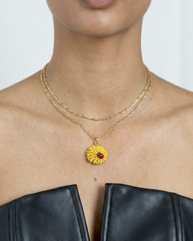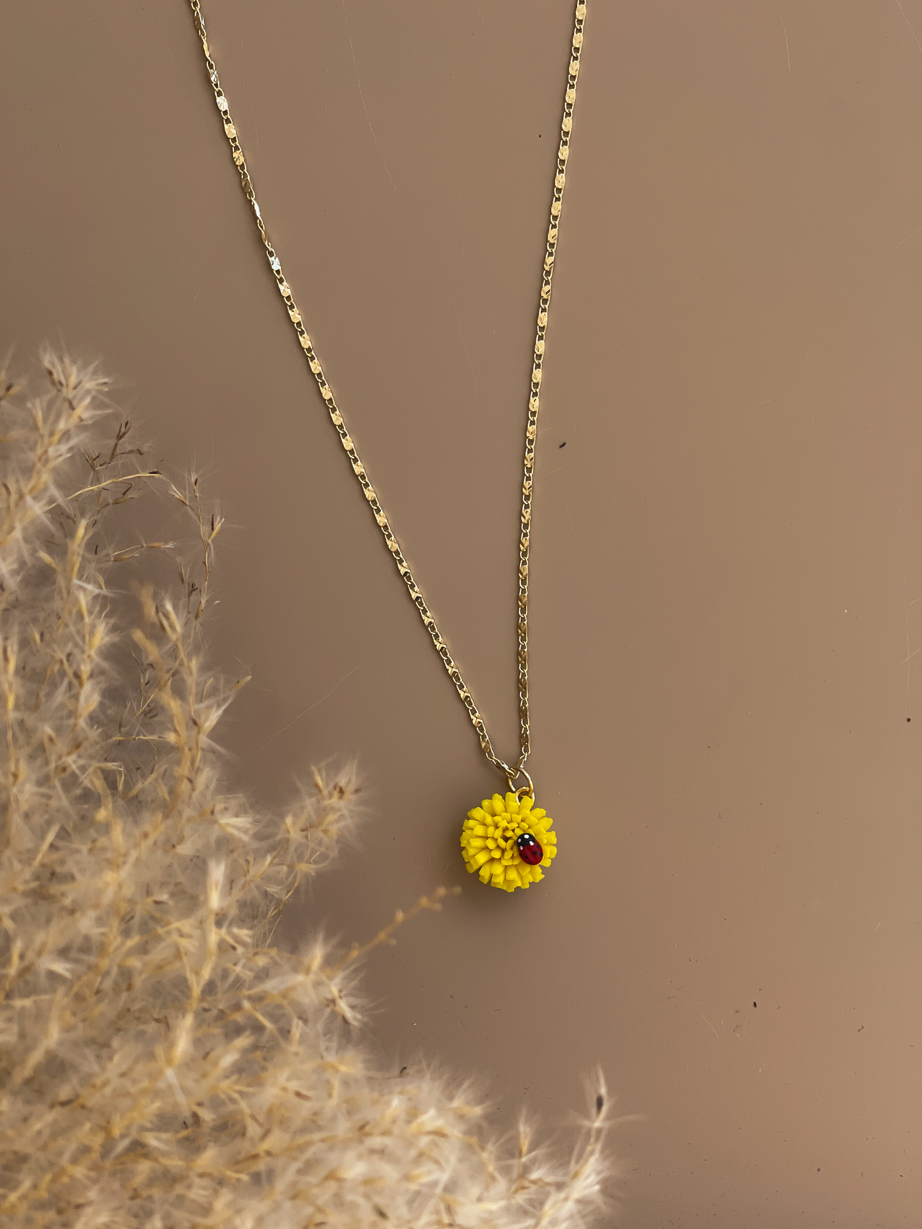 Це кольє у позолоті з кульбабами — унікальне поєднання природної витонченості та розкоші. Майстерно виготовлене вручну, воно відтворює легкість кульбаби в золотому відтінку, що додає вишуканості та елегантності кожному образу.