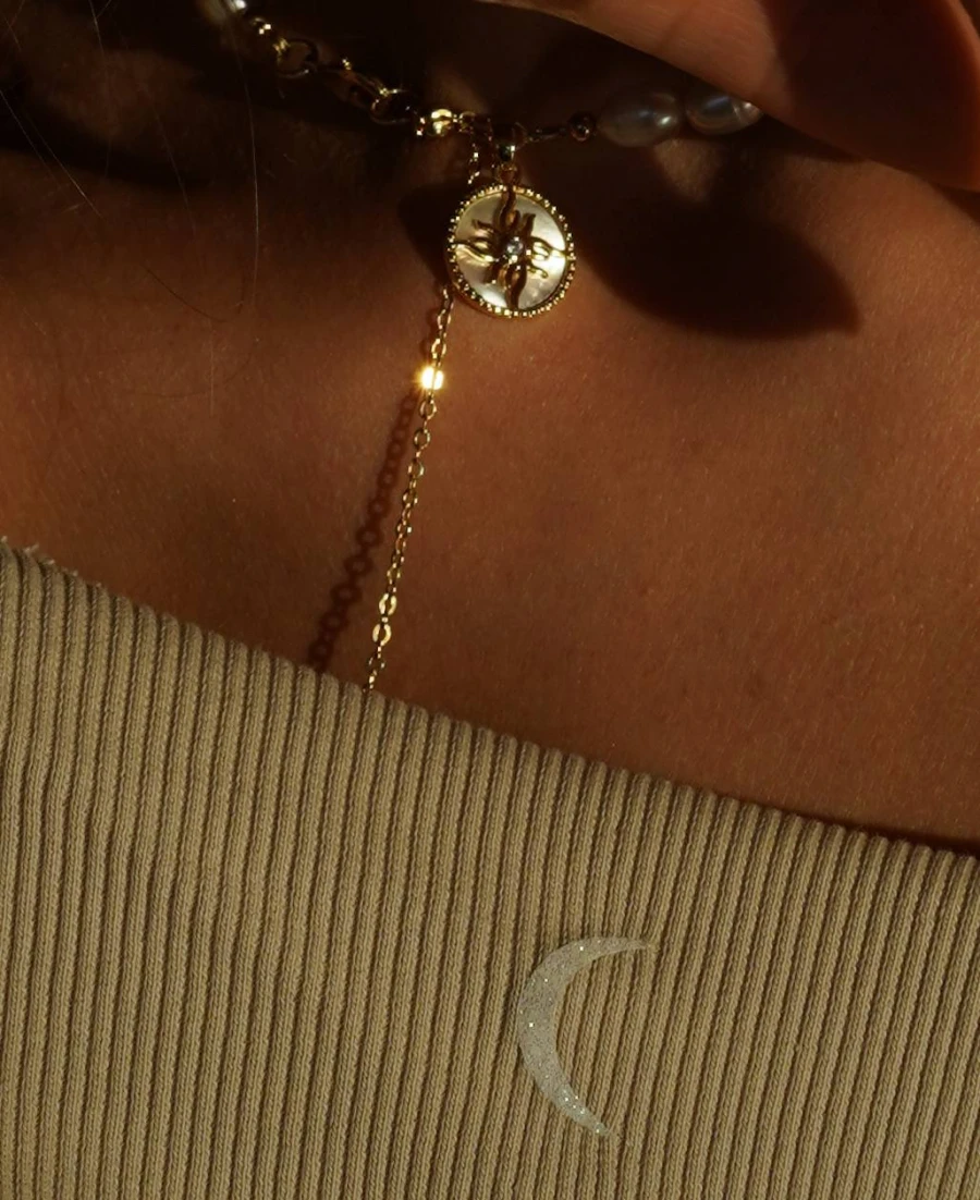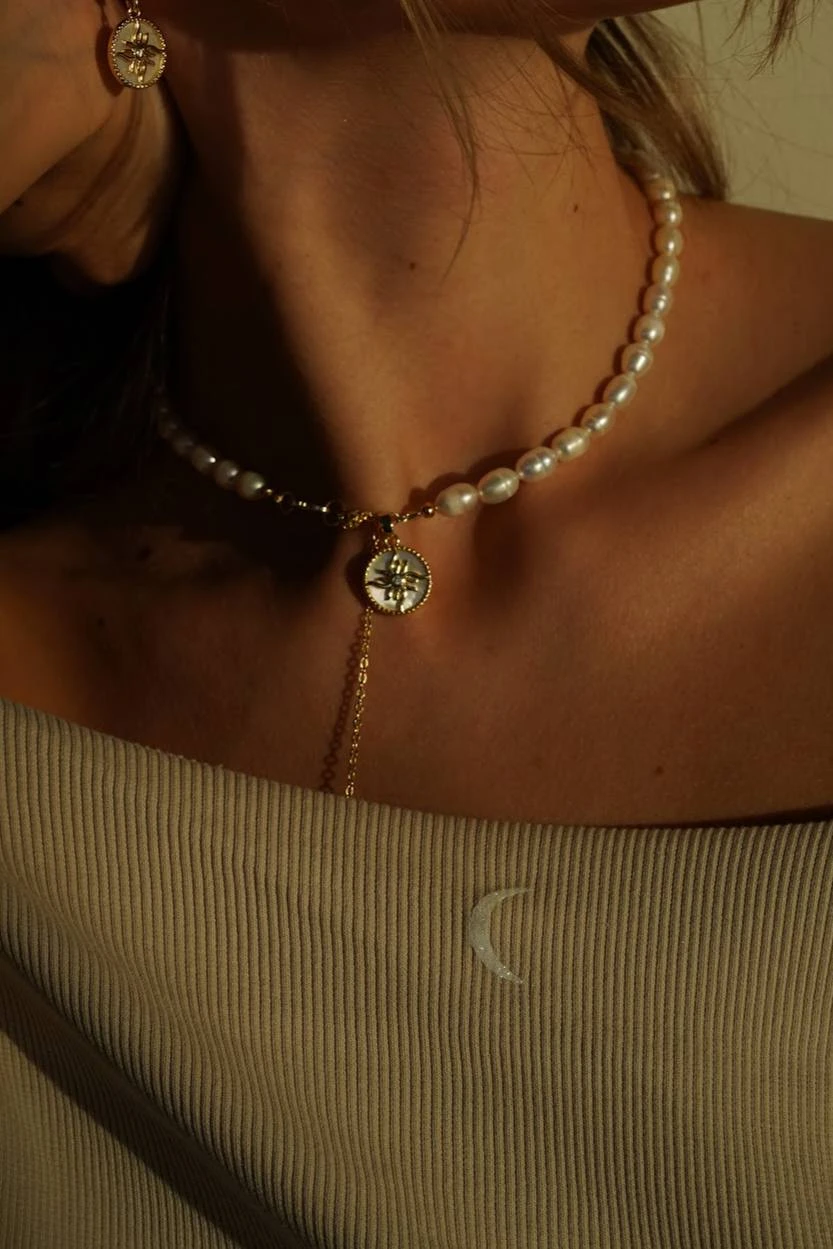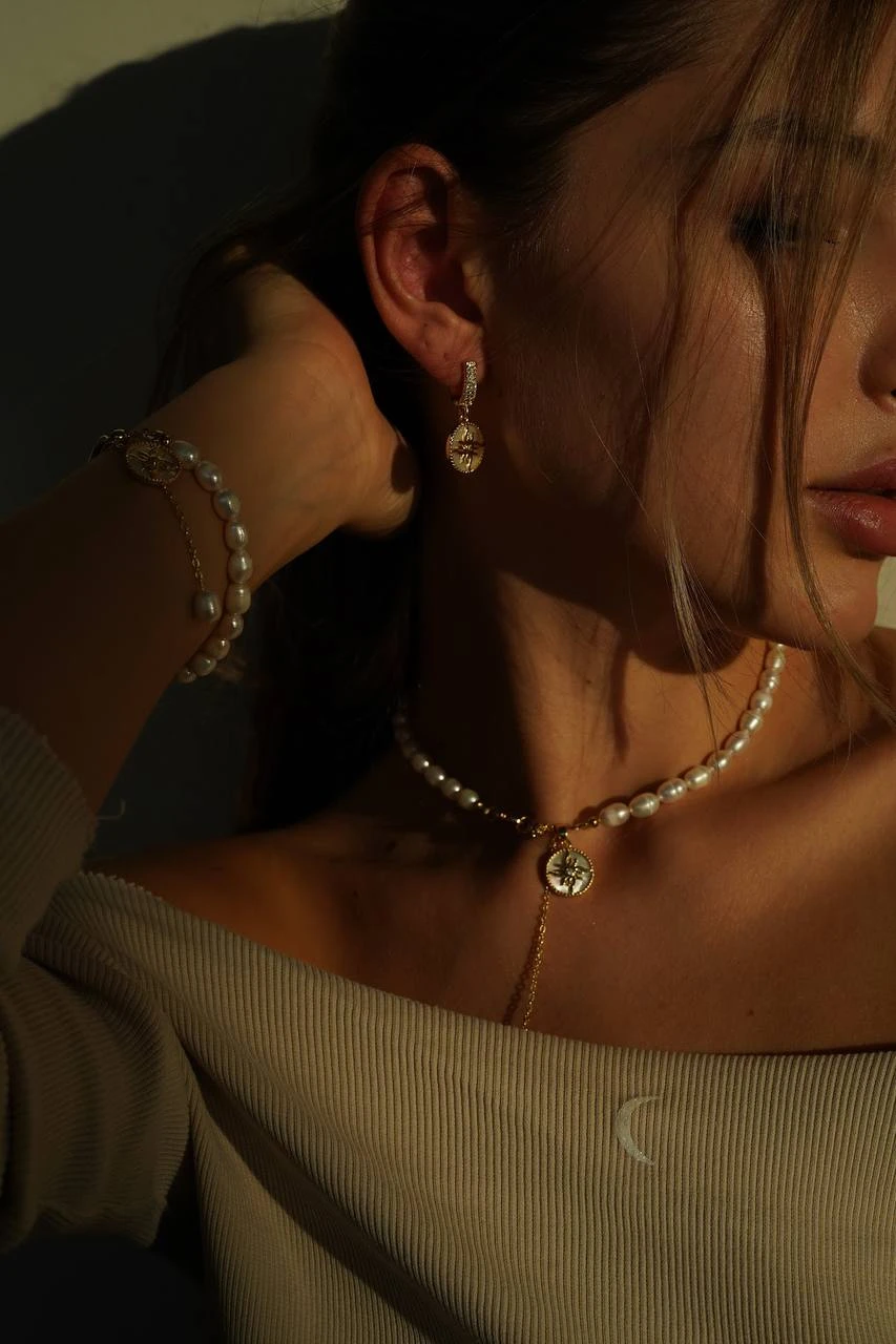 Уявіть собі ніжну гру світла на гладкій поверхні Високоякісних перлин, що переливаються всіма відтінками білого. Кожна перлина – це маленьке диво природи, створене часом і морською глибиною. Вони ніжно обрамлені елементами з позолоти, які надають кольє вишуканості та благородства.
