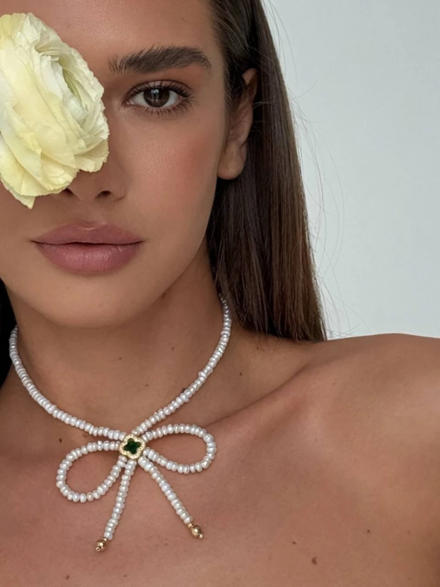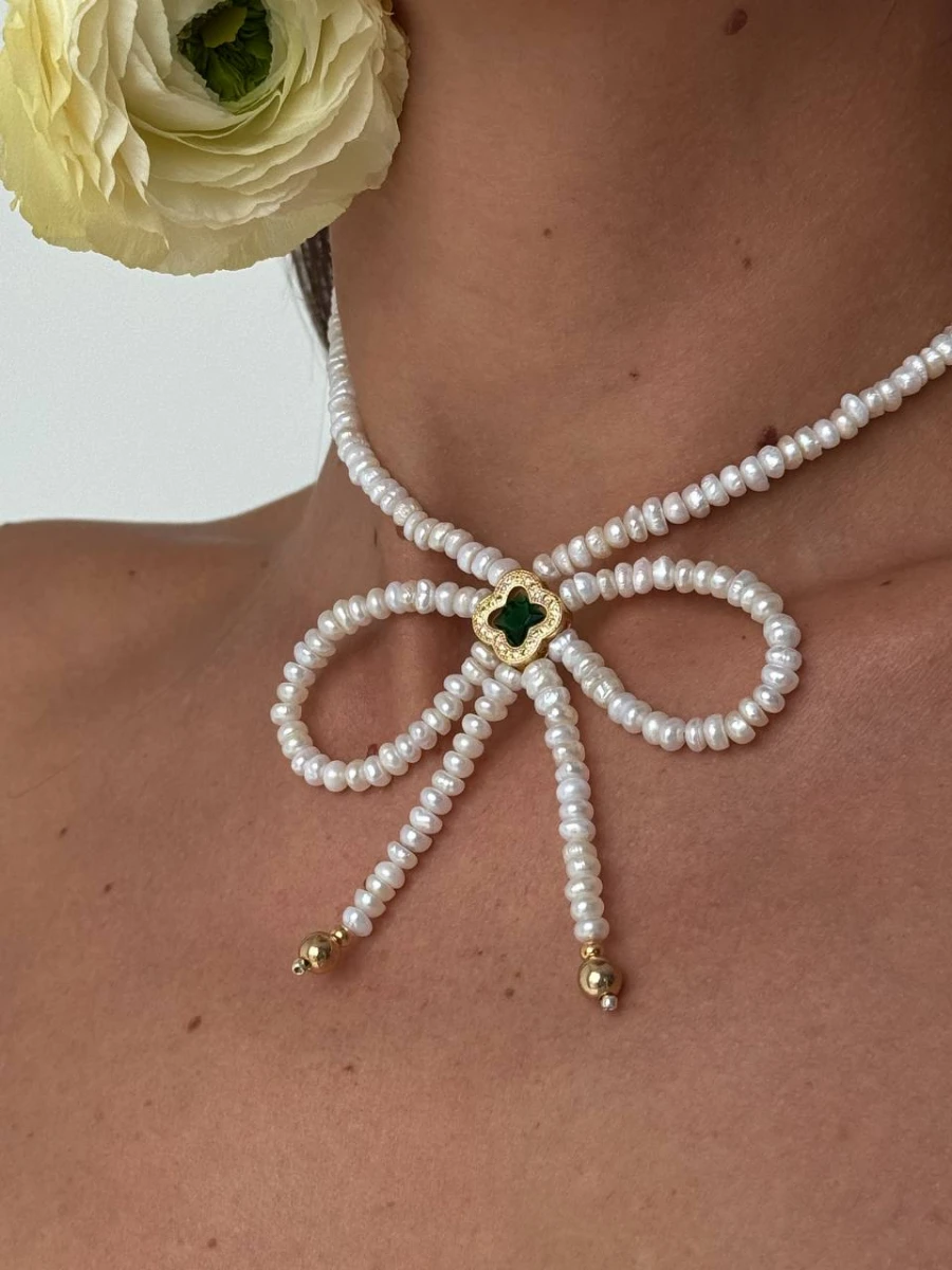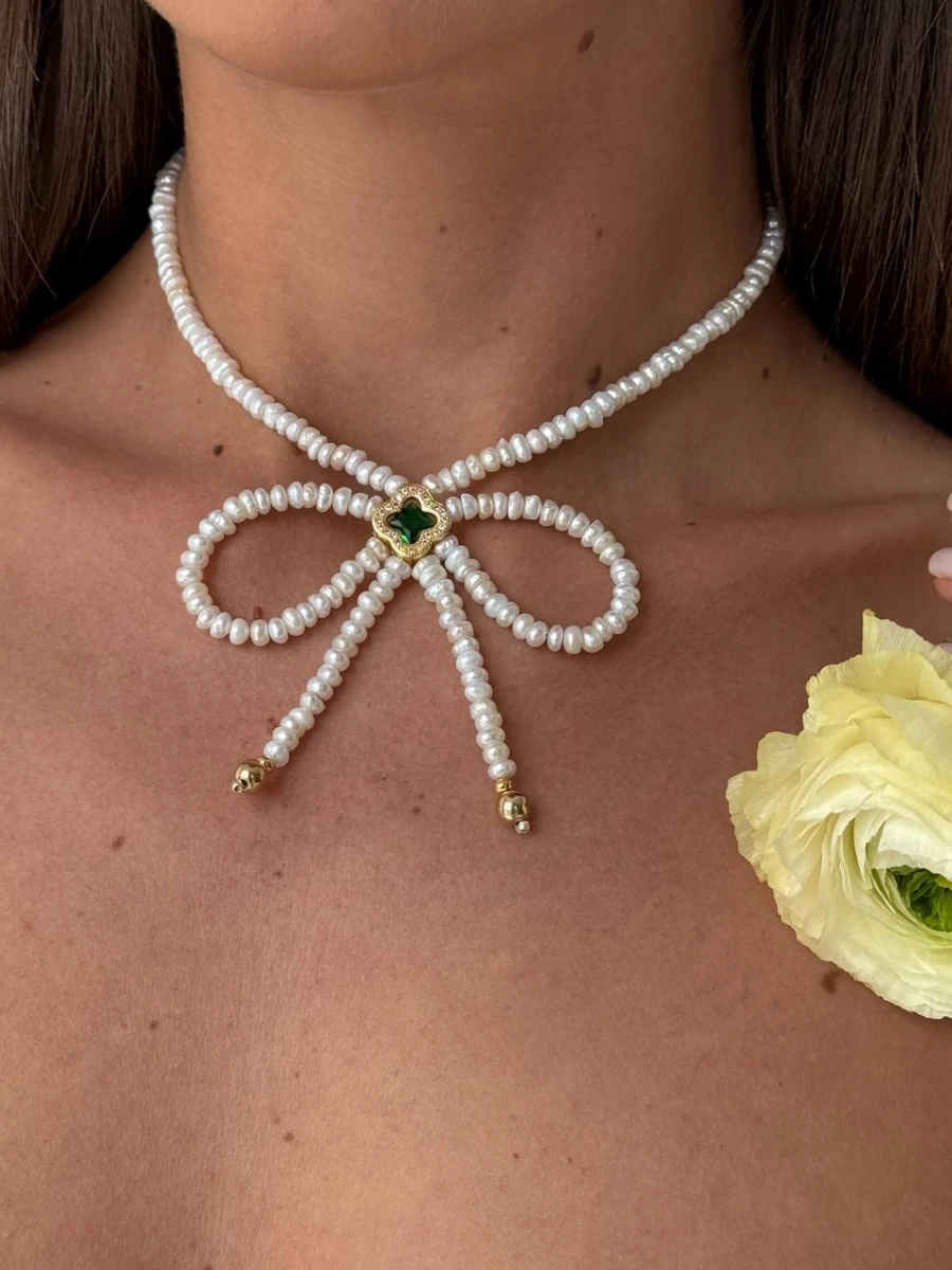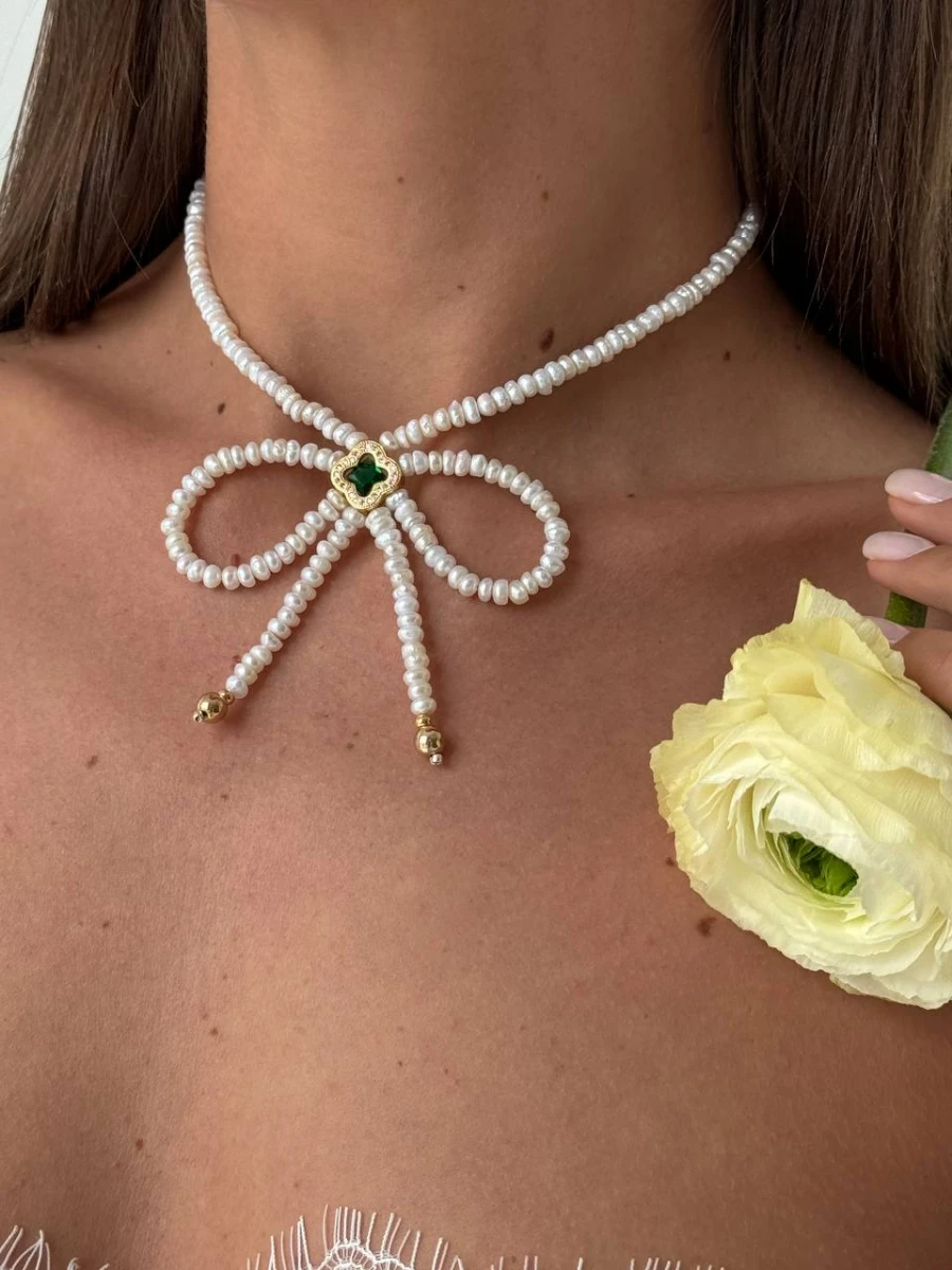 Це вишукане кольє з позолоченого медсплаву, прикрашене перлами кукурудзи, стане чудовим доповненням до вашого образу. Воно поєднує в собі елегантність та розкіш, роблячи вас неперевершеною.