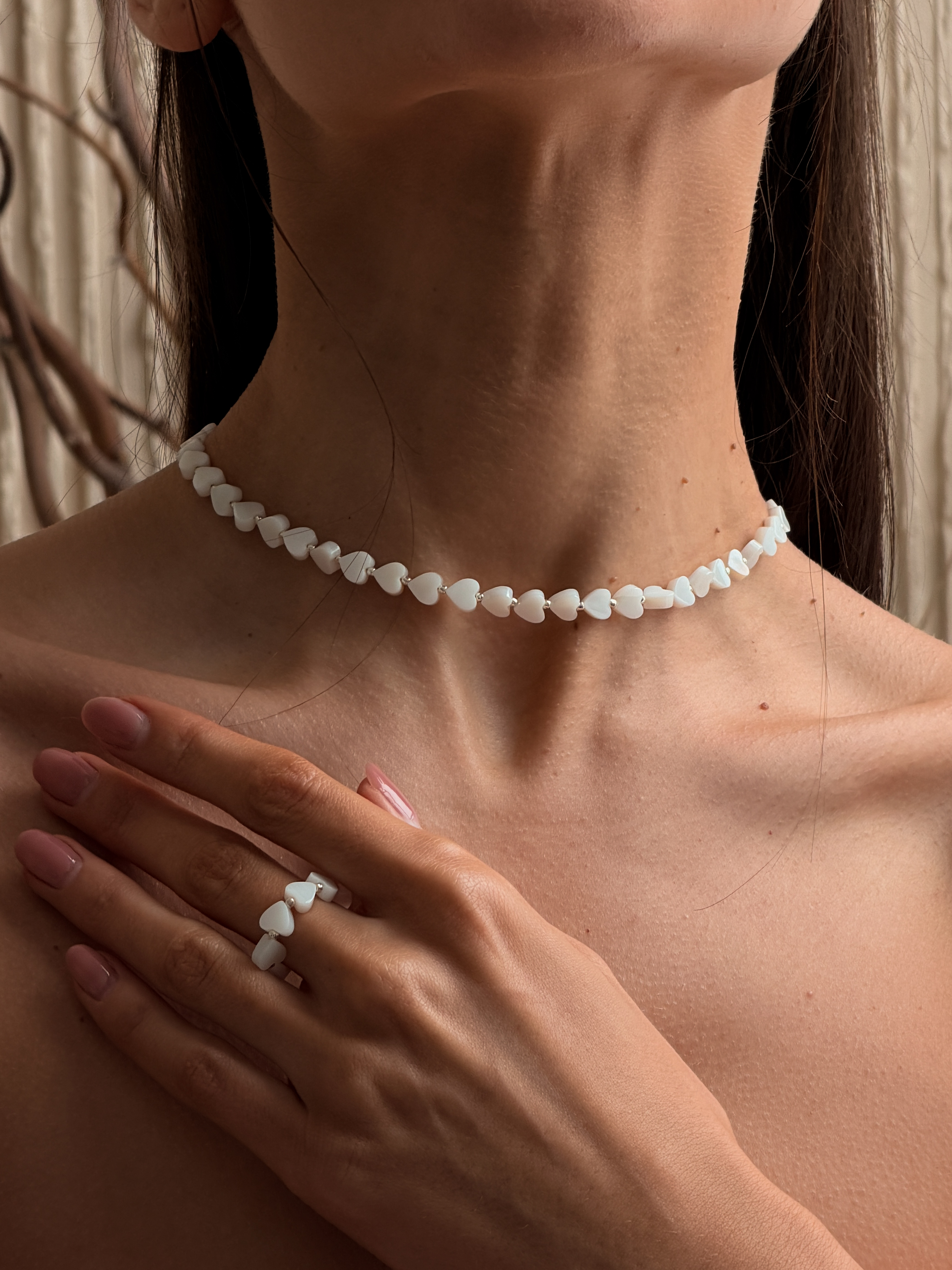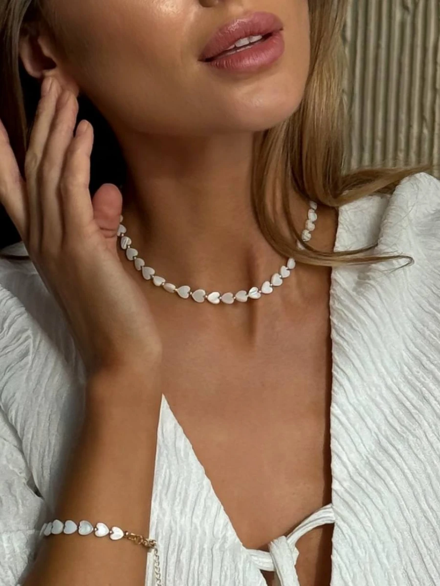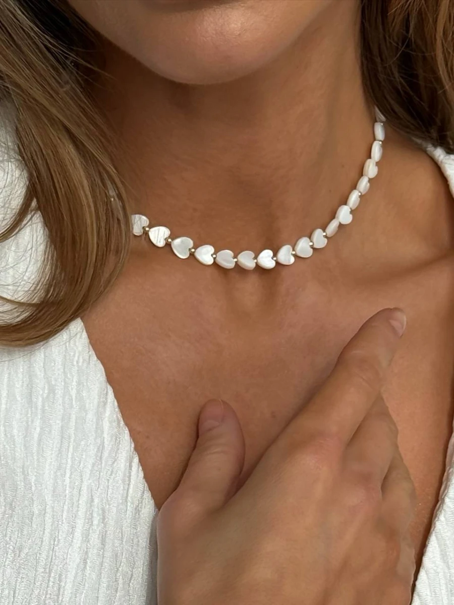 Кольє "Lovely heart" - це чудовий подарунок для себе або близької людини! Це елегантне кольє виготовлене з медичного сплаву з позолотою та прикрашене перламутровим серцем. Воно стане чудовим доповненням до будь-якого образу, додавши йому витонченості та романтичності.