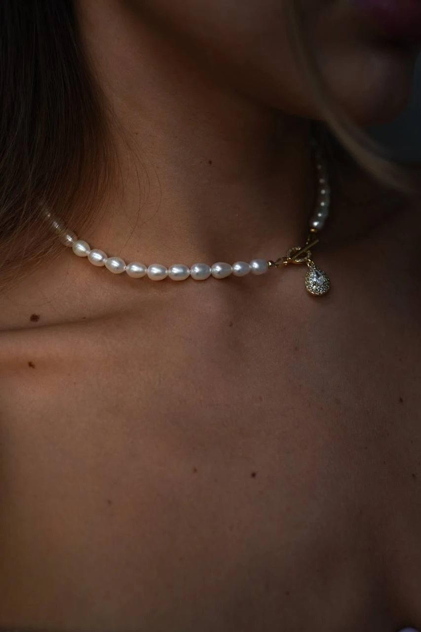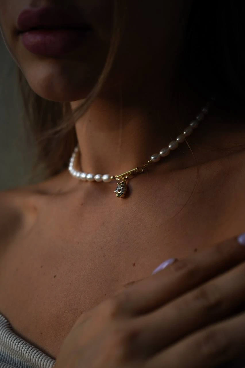 Кожне кольє – це унікальна композиція з Високоякісних перлин, які сяють м'яким перламутром, немов краплі роси. Їхній природний блиск доповнюють блискучі фіаніти, що імітують діаманти, надаючи прикрасі вишуканого сяйва.