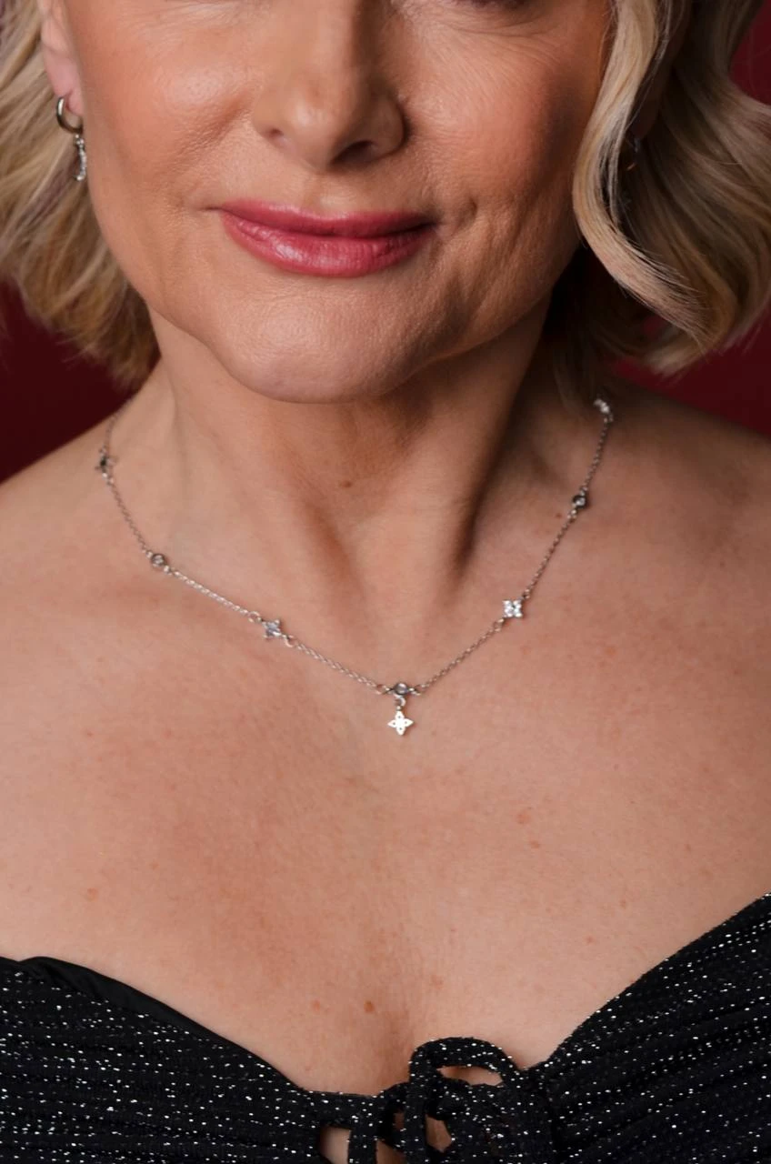 Витончене кольє, що втілює магію місячного сяйва. Виготовлене з високоякісного медсплаву з розкішним срібним покриттям, інкрустоване сяючими фіанітами. Ідеальний аксесуар для тих, хто цінує елегантність і романтику.