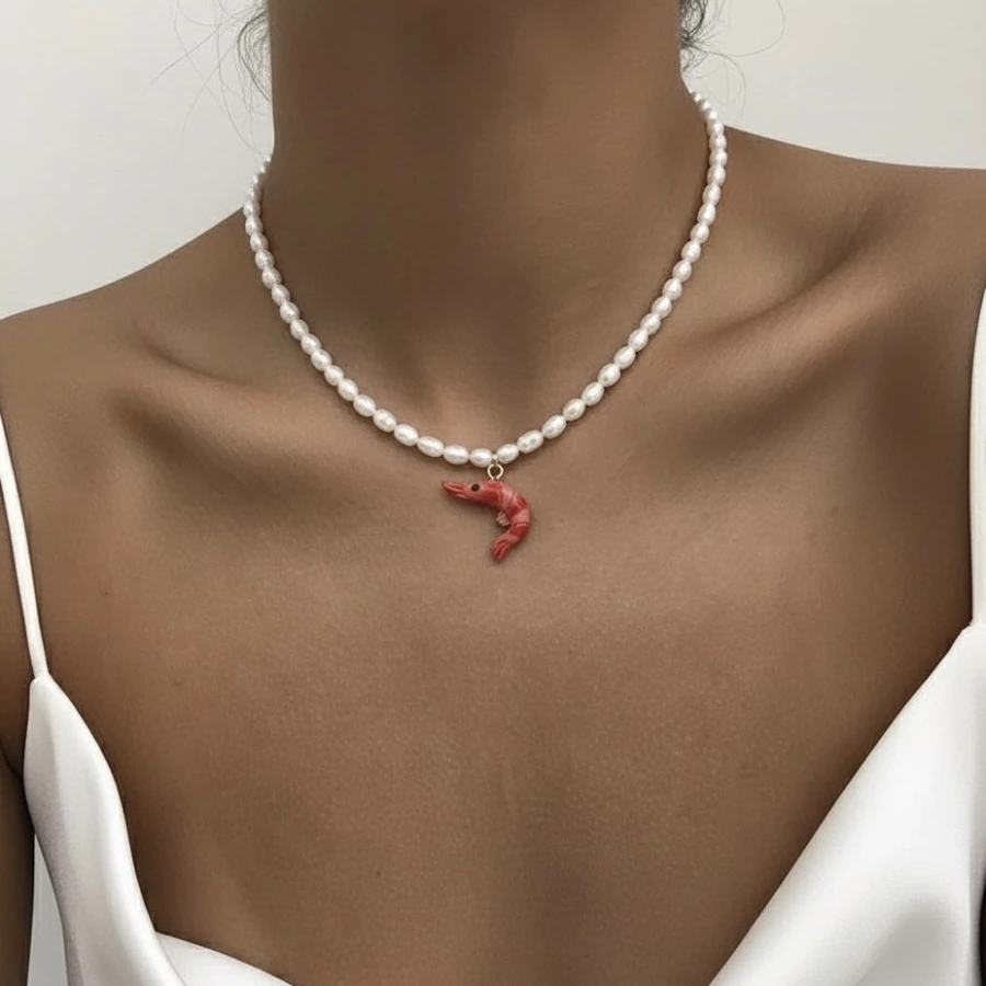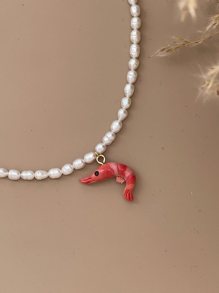 Унікальне кольє з перлами та кулоном ручної роботи у вигляді Одеської креветки – це справжня знахідка для тих, хто цінує оригінальні та стильні прикраси.