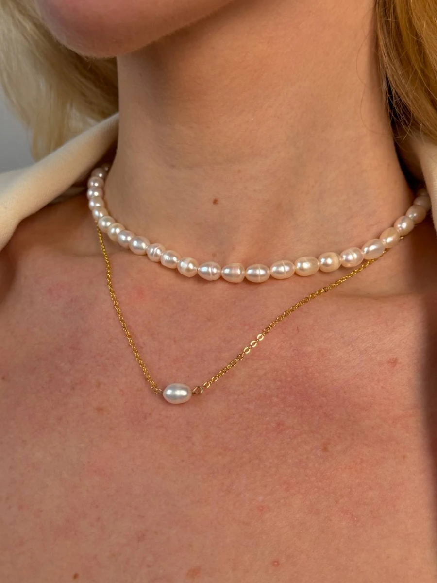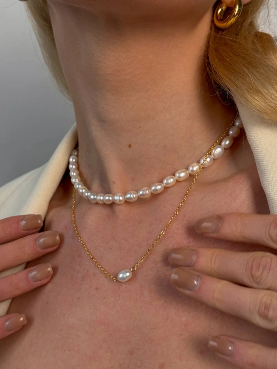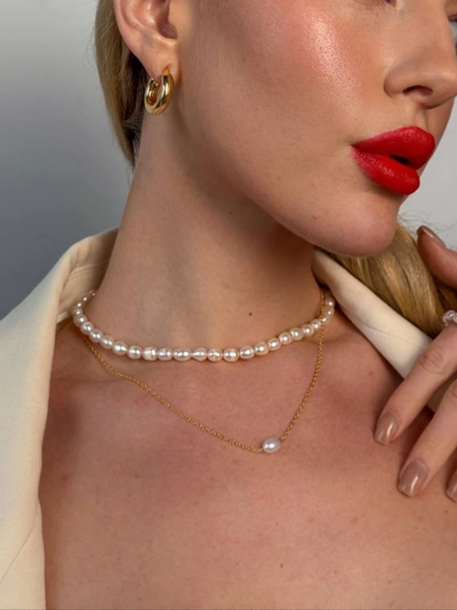 Кольє "Ones & Simply" - вишуканий дует кольє, що доповнить будь-який образ. "Ones" – мінімалістичне кольє з однією перлиною (1010 грн), "Simply" – елегантне кольє (1550 грн). Обидва виготовлені з медсплаву з позолоченим покриттям. Має застібку карабін і 5 см подовжувача. Можна придбати разом або окремо.