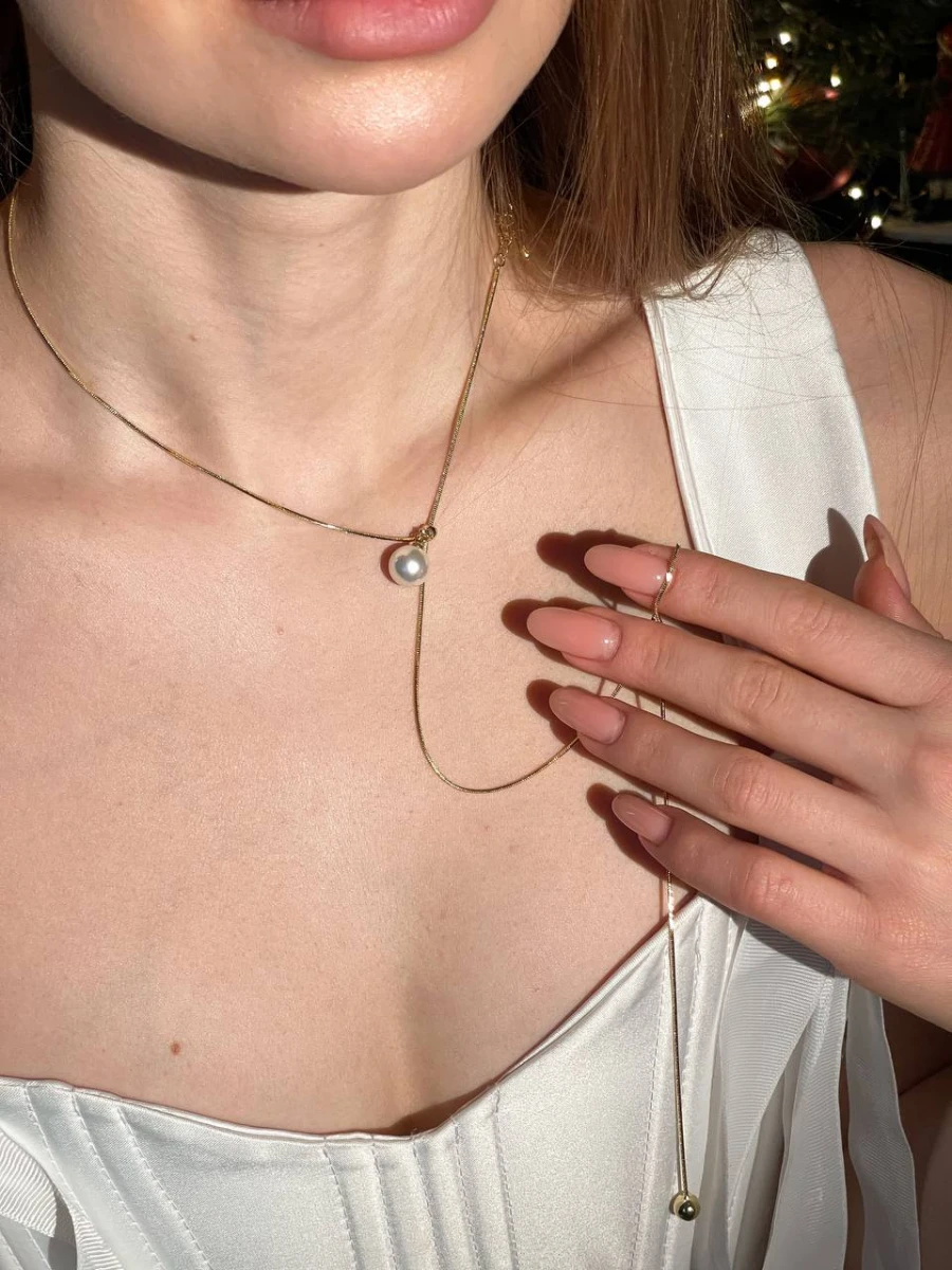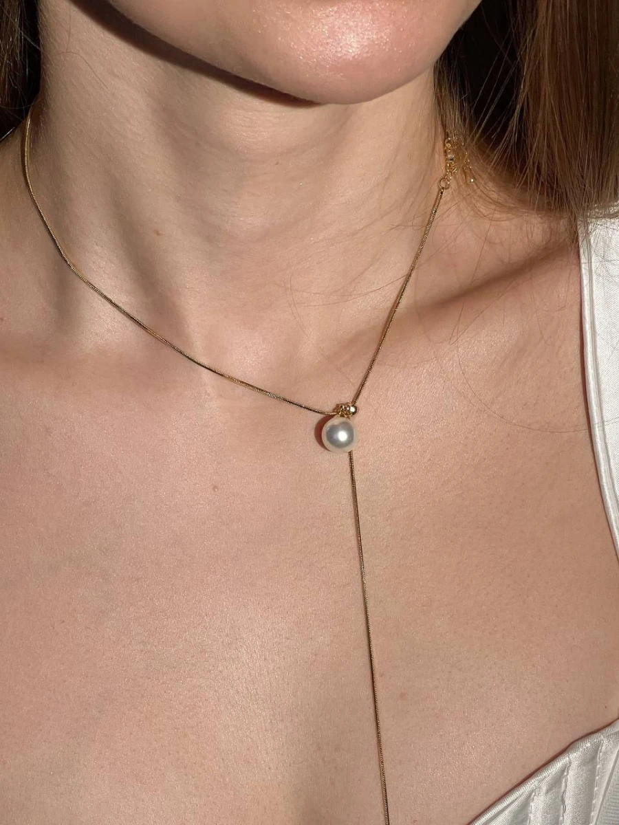 Елегантне кольє з медсплаву із позолоченим покриттям та ніжними перлинами. Довжина виробу — 72 см, з додатковим подовжувачем 5 см, що забезпечує ідеальну посадку. Оснащене зручним карабіном і регульованою протяжкою для комфортного носіння. Вишуканий вибір для створення ніжного образу.