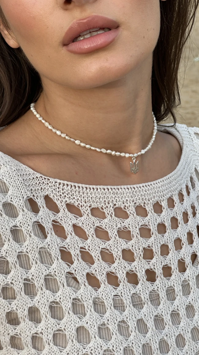 Кольє - це надзвичайно вишукана та елегантна прикраса, виготовлена з перлів та застібкою з срібним покриттям.