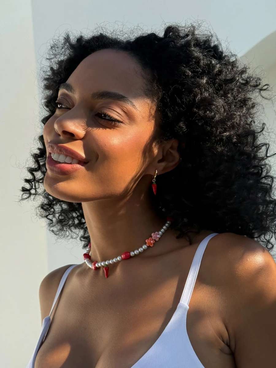 Червоний колір символізує пристрасть і енергію, роблячи кольє ідеальним вибором для тих, хто хоче додати яскравий штрих до свого образу.