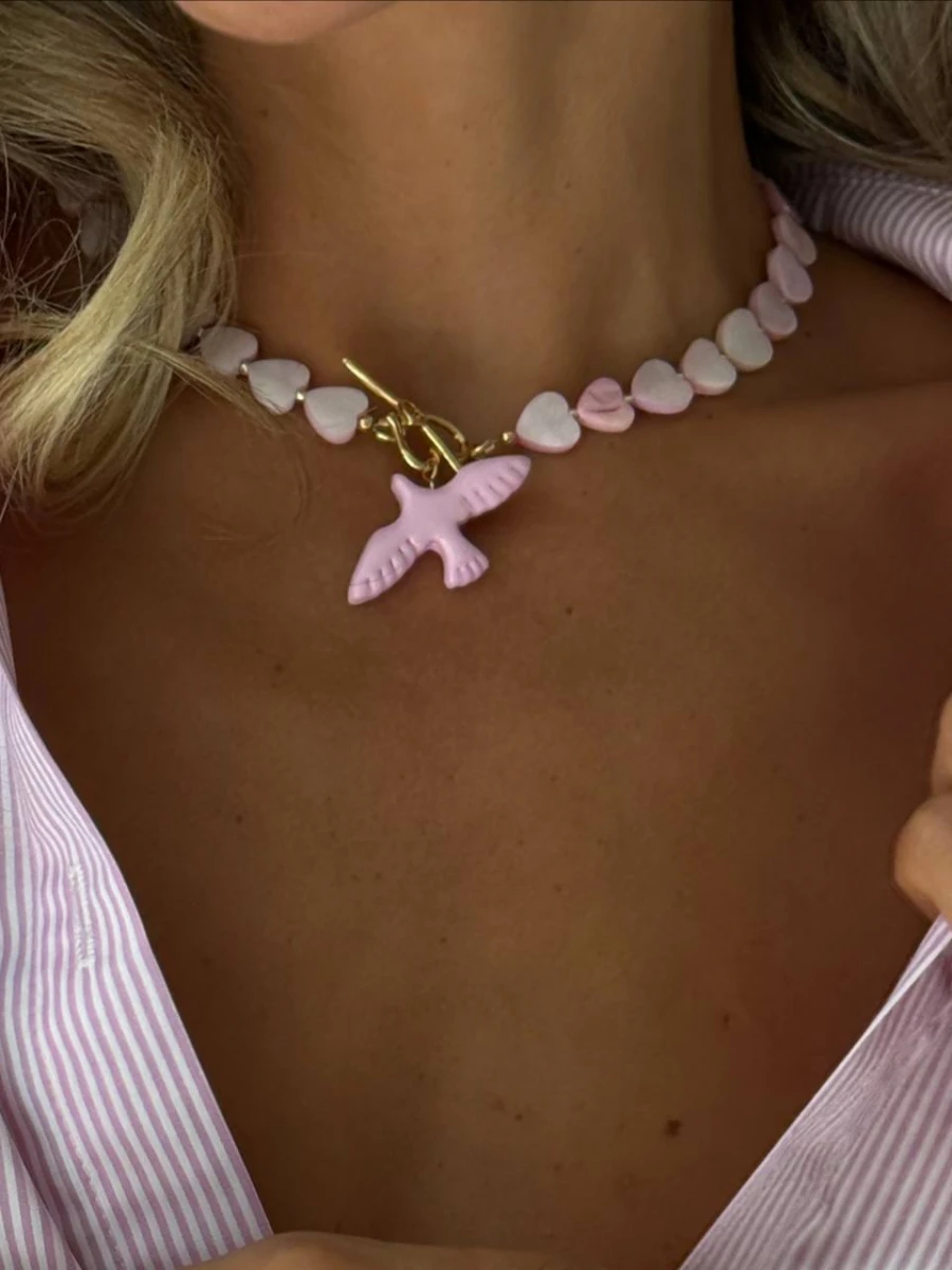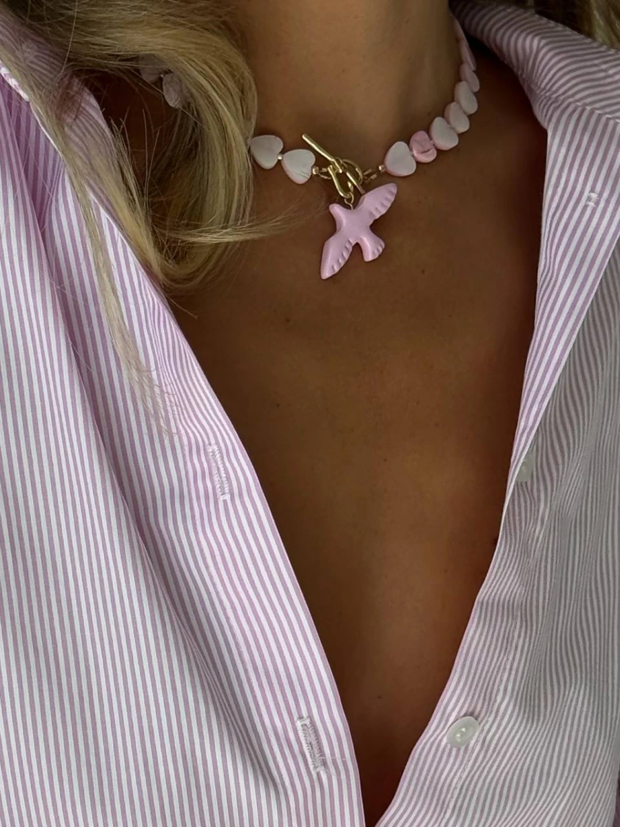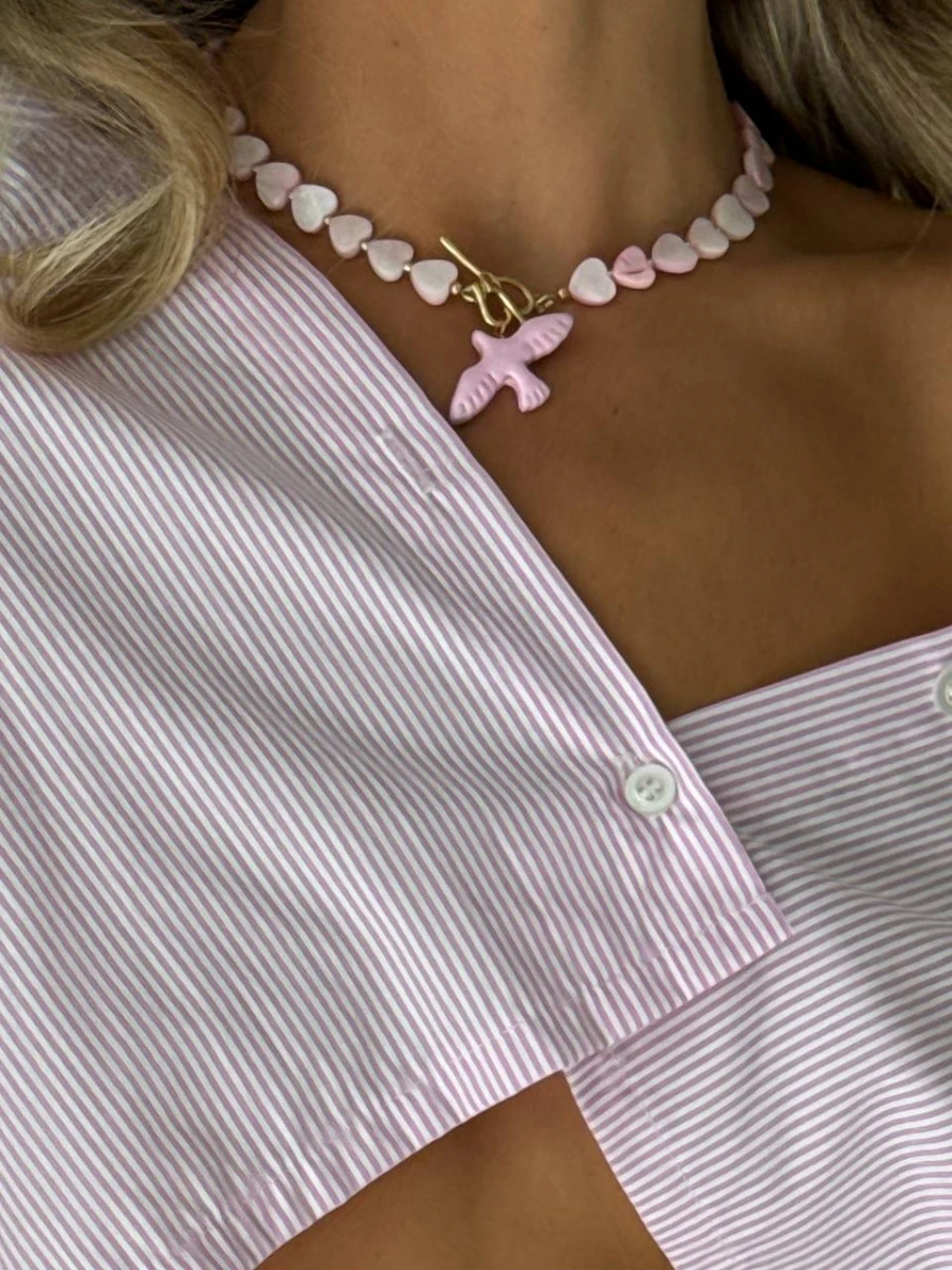 Кольє "Румʼяна Горлиця" - Ніжне та елегантне кольє з перламутрових сердець та позолоти, неодмінно стане вашим улюбленим цього літа! Яскрава прикраса яка доповнить ваш літній образ та зробить його ще більш оригінальним та привабливим!