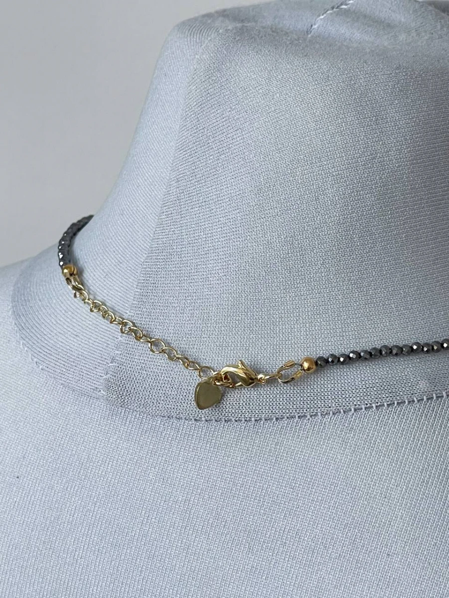 Кольє виготовлене з використанням терагерцу та має застібку з медсплаву вкриту позолотою 18К, що додає йому надійності та елегантності.
