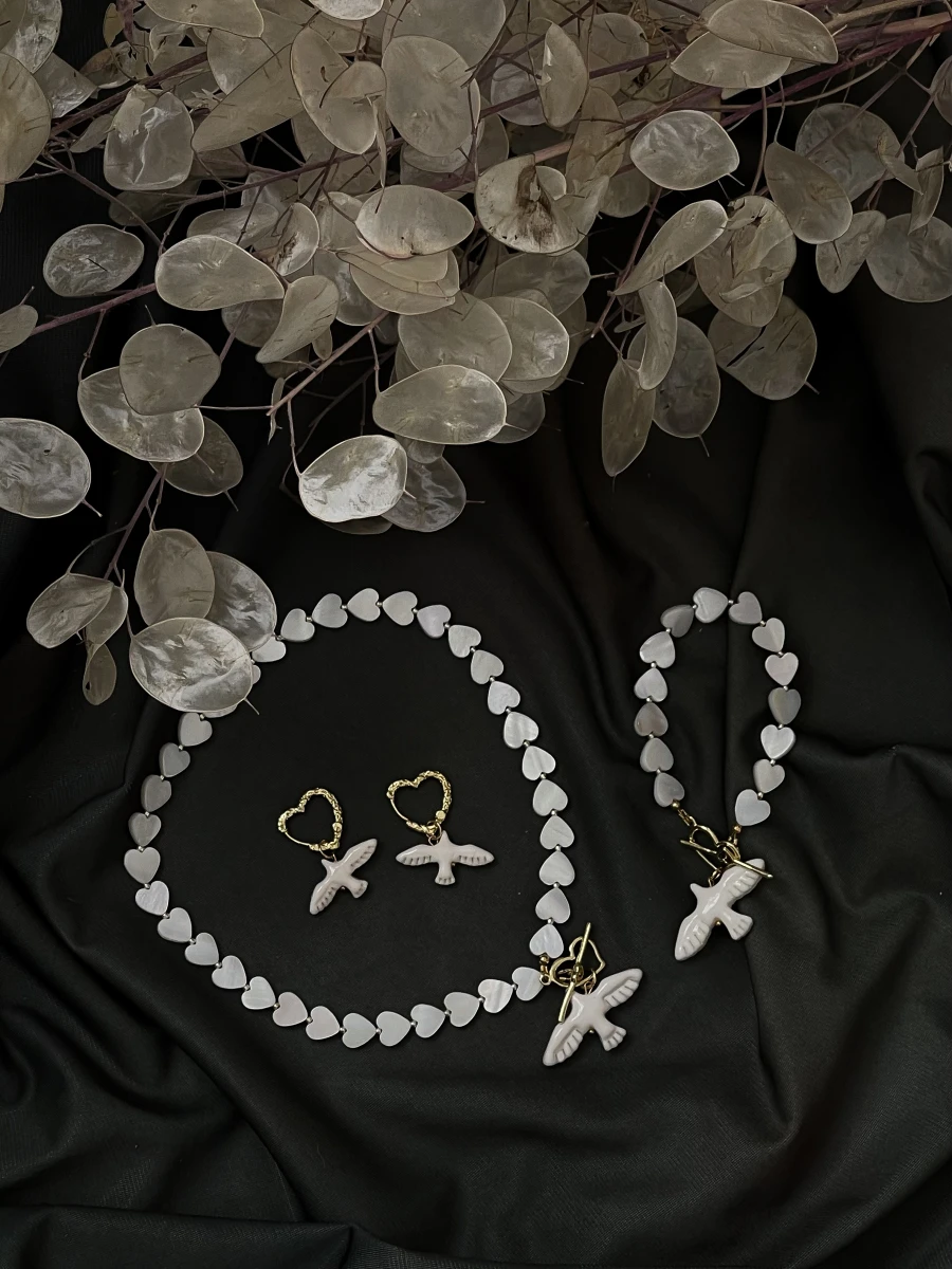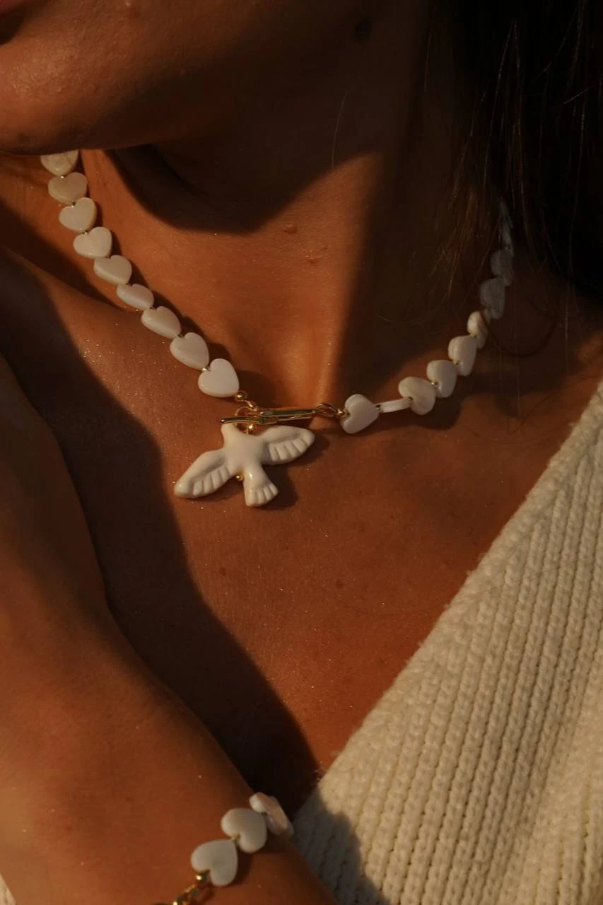 Кольє обережно вкрите тонким шаром позолоти, що підкреслює глибину кольору перламутру і додає вишуканості образу пташок. Позолота ніби оживляє кольє, надаючи йому сяйва і витонченості.