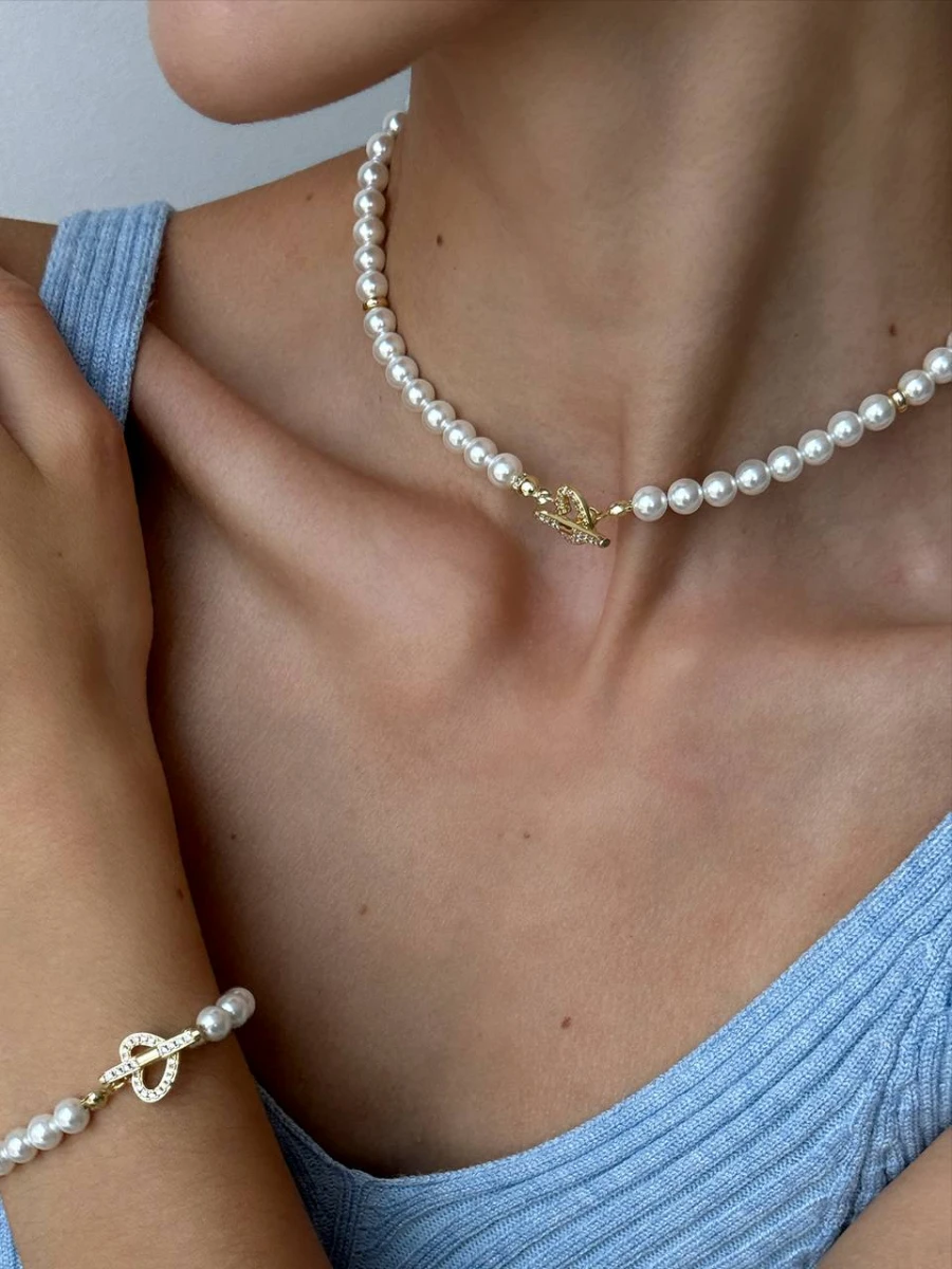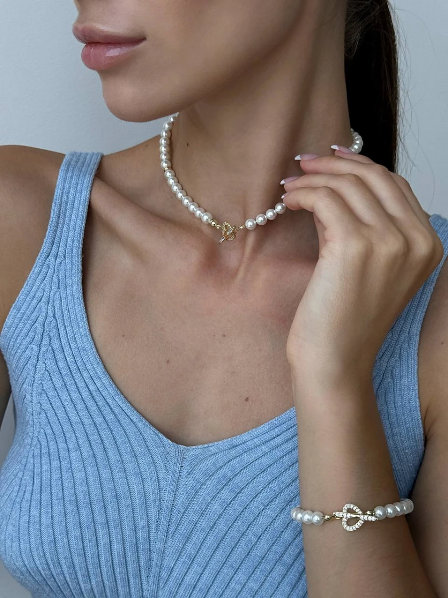 Кольє "Shine Heart" - Це вишукане кольє, яке стане окрасою будь-якого образу, поєднує в собі красу Високоякісних перлів, блиск позолоти та сяйво фіанітів.