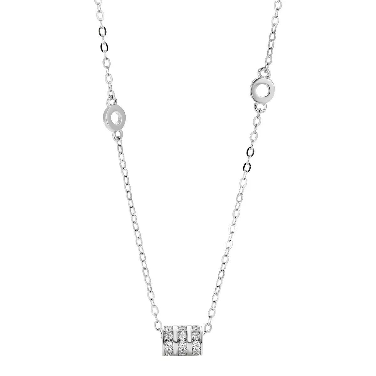 Кольє "Shine Mia" — елегантний аксесуар, який доповнить будь-який образ. Виготовлене з медсплаву з срібним покриттям та вставками з фіанітів, це кольє привертає увагу блиском та витонченістю. Застібка карабін забезпечує зручне носіння, а подовжувач (40+5 см) дозволяє регулювати довжину для ідеального посадки. Ідеальний вибір для святкових подій та щоденного носіння.