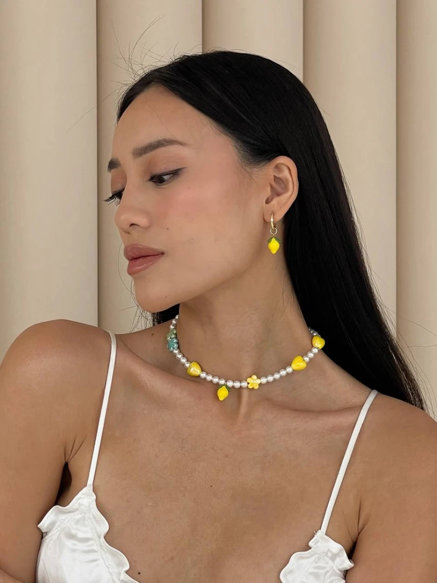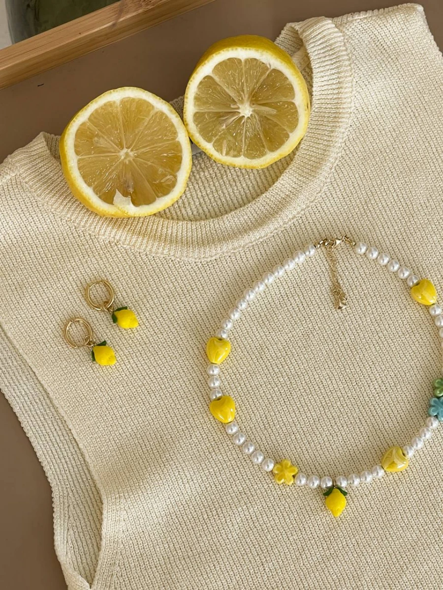 Кольє "Сицилія" — вишуканий аксесуар із полімерної глини, медсплаву та майорки, прикрашений позолотою. Зручна застібка-карабін із подовженням 5 см забезпечує ідеальну посадку. Ідеально доповнить ваш образ стильним акцентом.