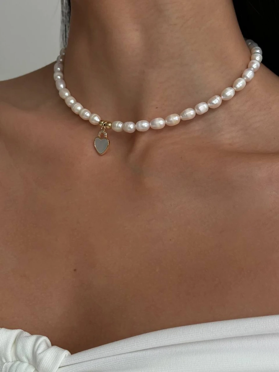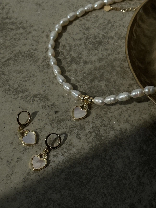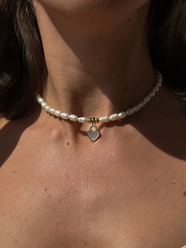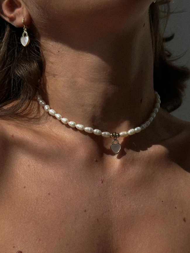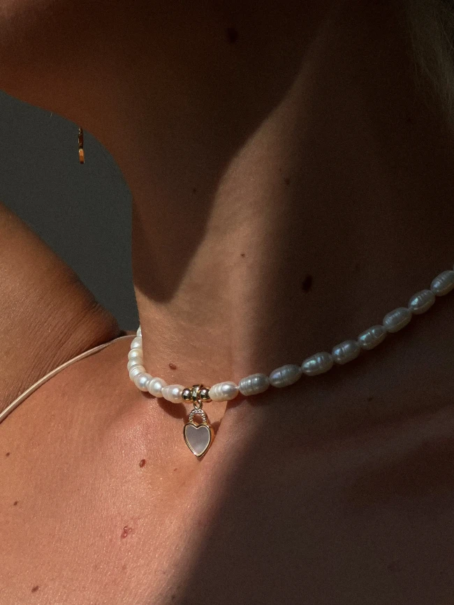 Закохайтеся в ніжність з нашим кольє ручної роботи "Silly". Виготовлене з Високоякісних перлів, які надають їй вишуканості та ніжності. Кулон у вигляді серця з перламутру символізує вашу любов та пристрасть.
