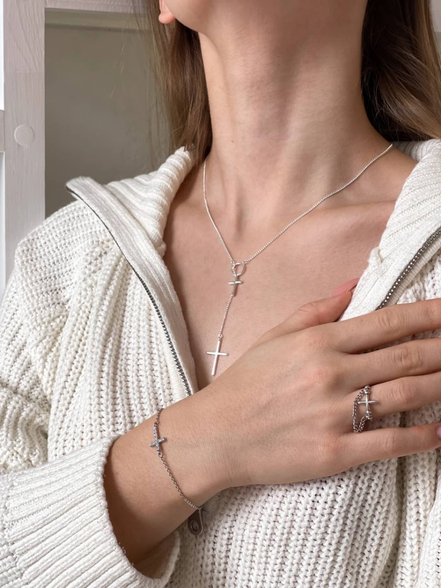 Кольє "Silver Amen" – елегантна прикраса з медсплаву зі срібним покриттям. Вишуканий дизайн доповнить будь-який образ, надаючи йому ніжності та стилю. Довжина: 42+5 см.