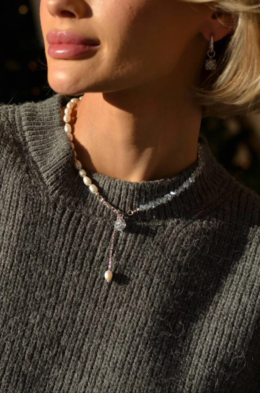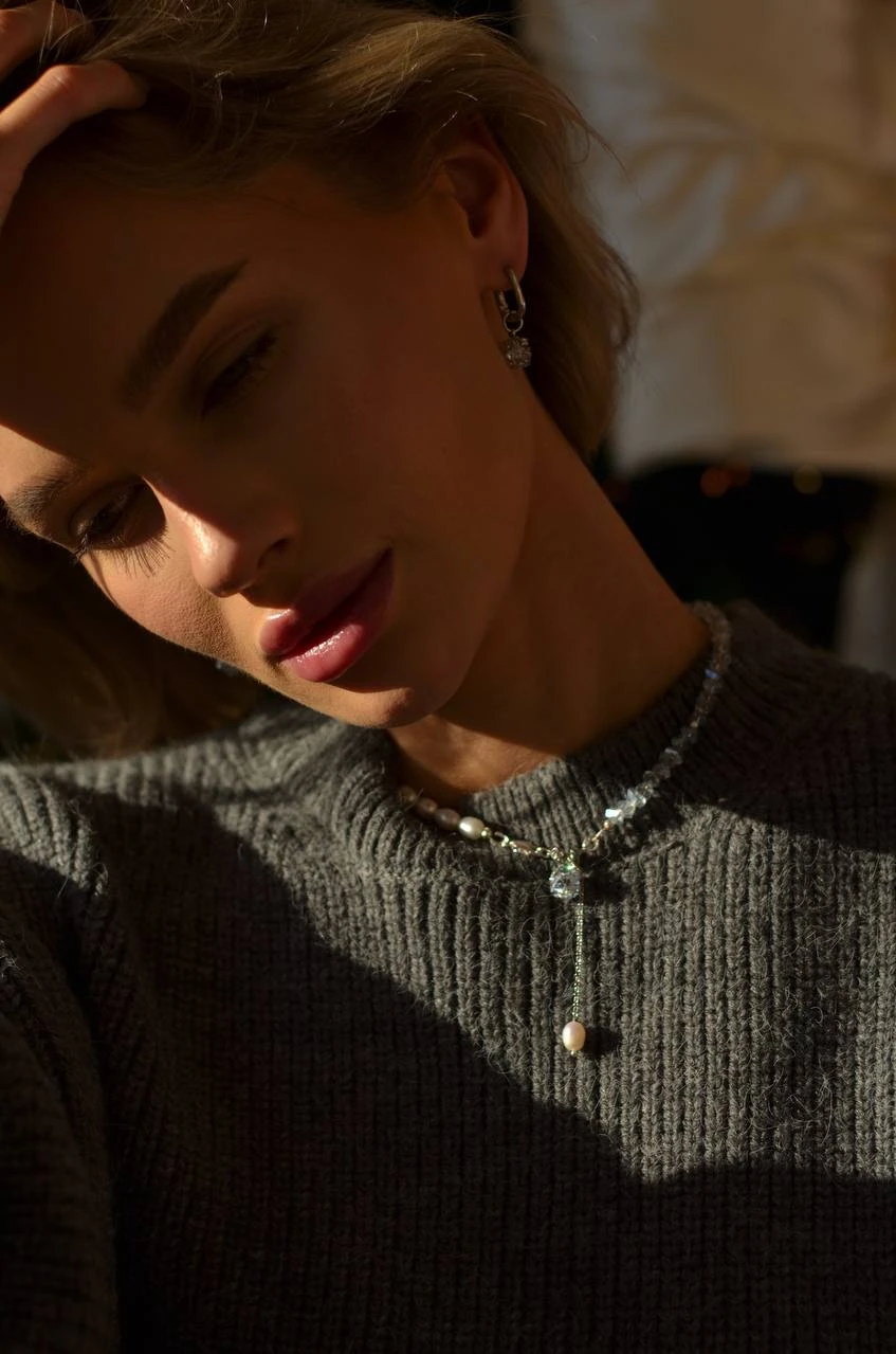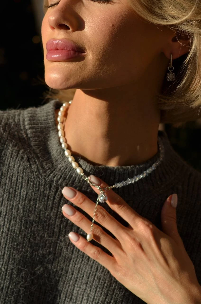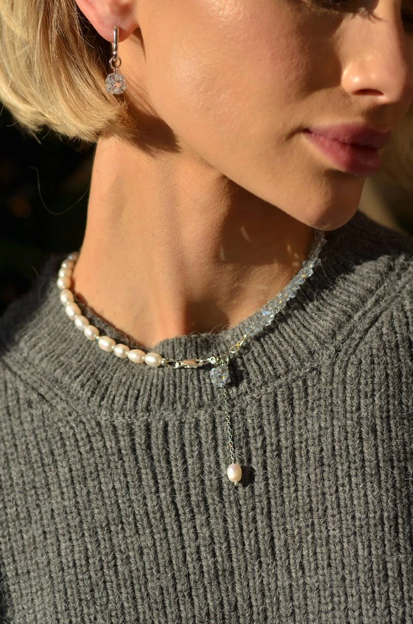 Кольє "Silver Glass" – елегантний акцент для вашого образу. Виготовлене з перлів, медичного сплаву з срібним покриттям та ювелірного скла, воно поєднує в собі витонченість і сучасний стиль. Цей аксесуар підкреслить вашу індивідуальність та стане ідеальним доповненням як до повсякденного, так і до святкового вбрання.
