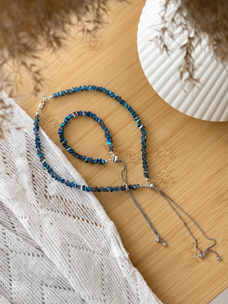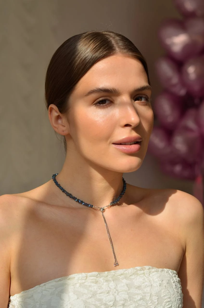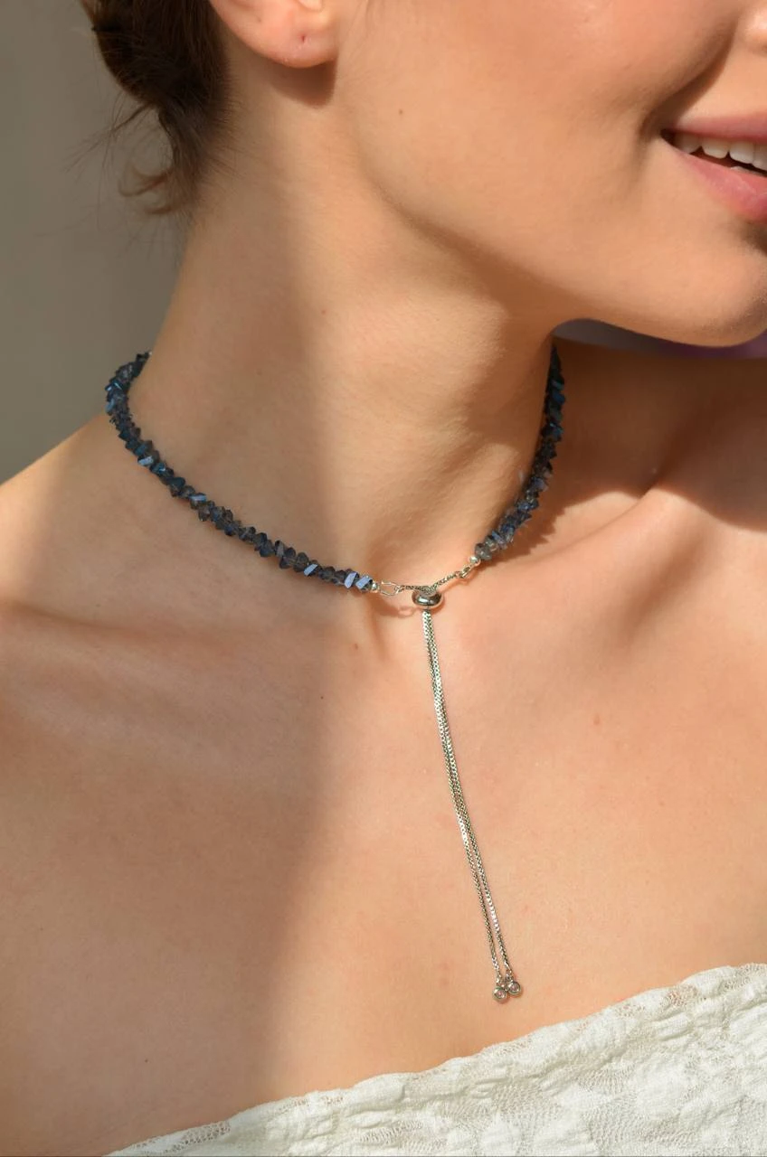 Кольє "Sparkle Darkside" — витончене і елегантне прикраса, яке додає загадковості та шику. Виготовлене з ювелірного скла, медсплаву та срібного покриття, воно поєднує в собі сучасний стиль та вишуканість. Застібка-протяжка з регулятором і подовжувачем на 2 см дозволяє комфортно налаштувати довжину, підкреслюючи вашу індивідуальність. Ідеальний вибір для будь-якої події!