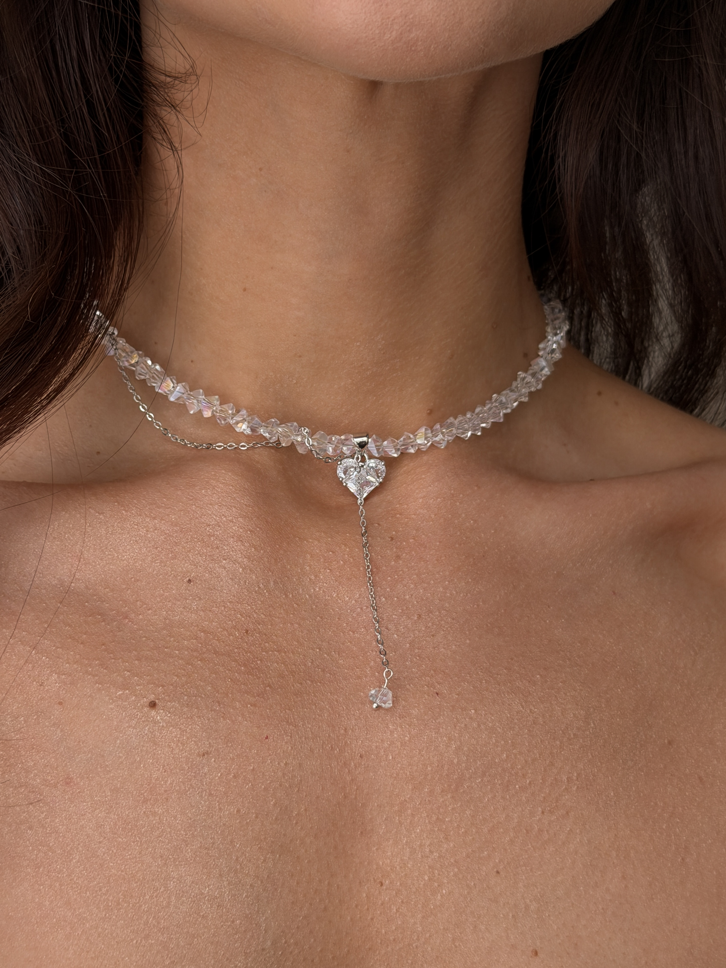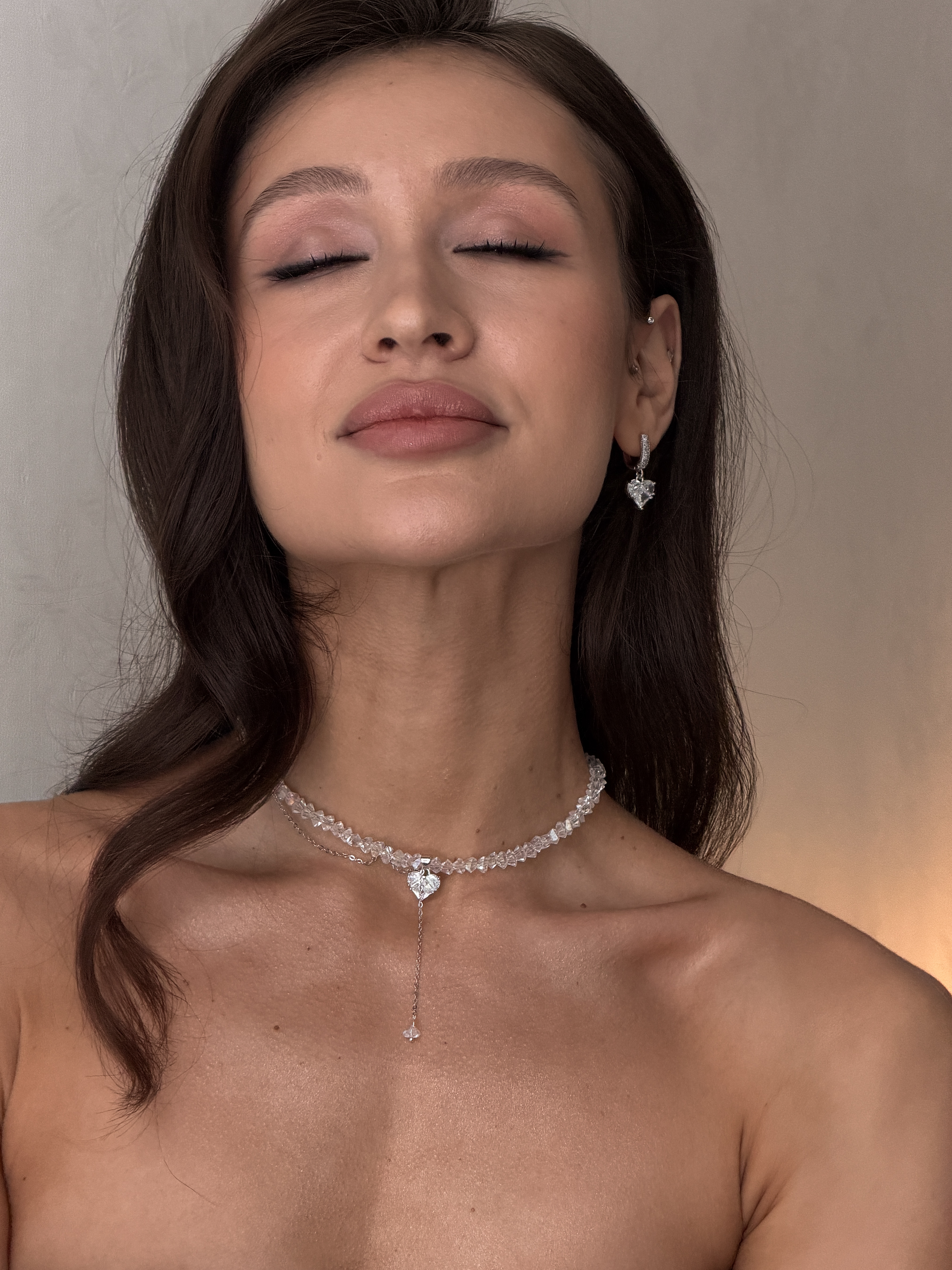 Кольє "Sparkle White" — витончене поєднання блиску та елегантності. Ювелірне скло та фіаніти створюють чарівне сяйво, а медсплав із срібним покриттям надає виробу вишуканості. Ідеальний аксесуар для стильних образів на кожен день та особливі моменти.