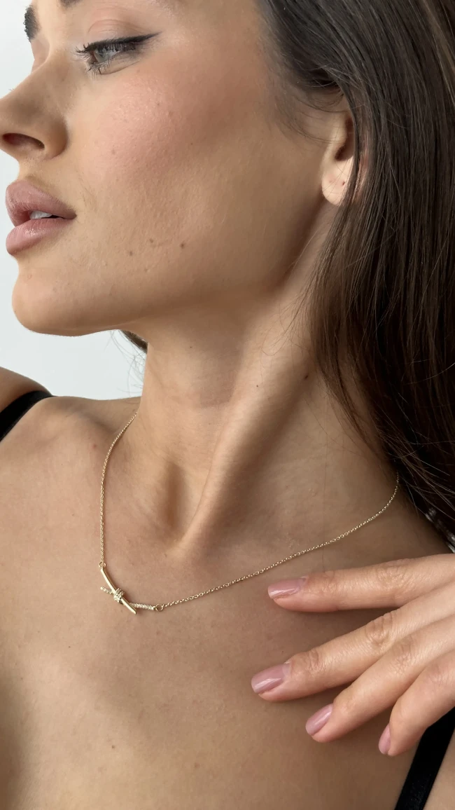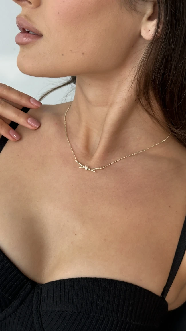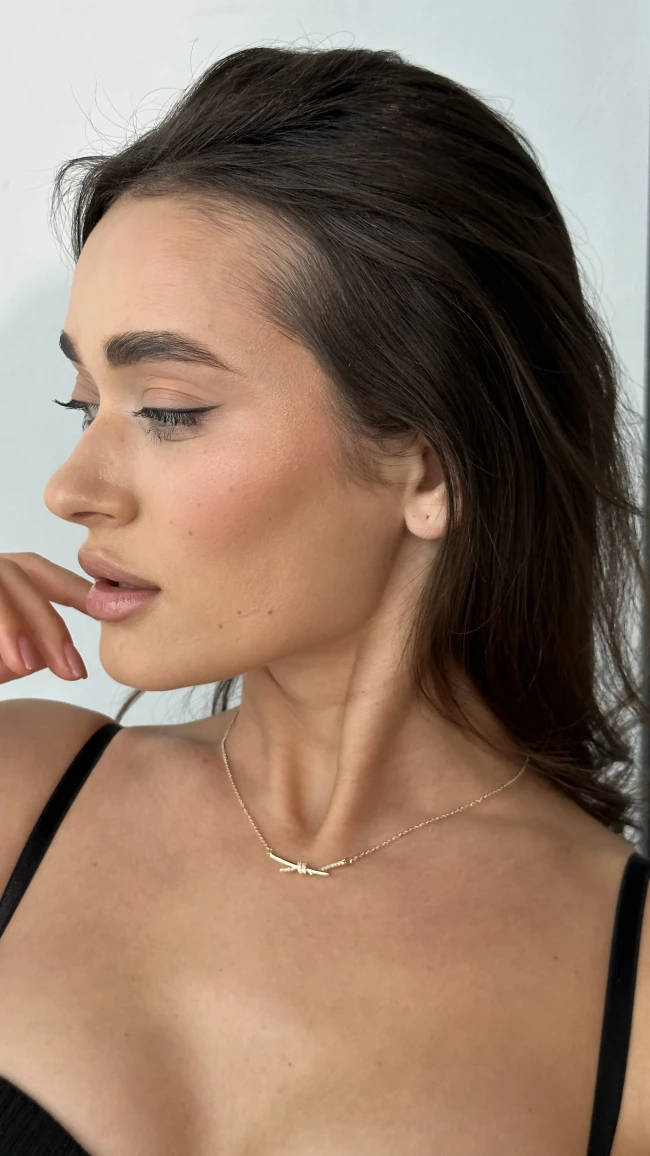 Кольє "Stick" у виконанні з позолоти - це чарівна та стильна прикраса, яка надасть вашому образу особливого блиску. Це кольє має унікальний дизайн у вигляді перехрещених палочок, які символізують гармонію і об'єднання.
