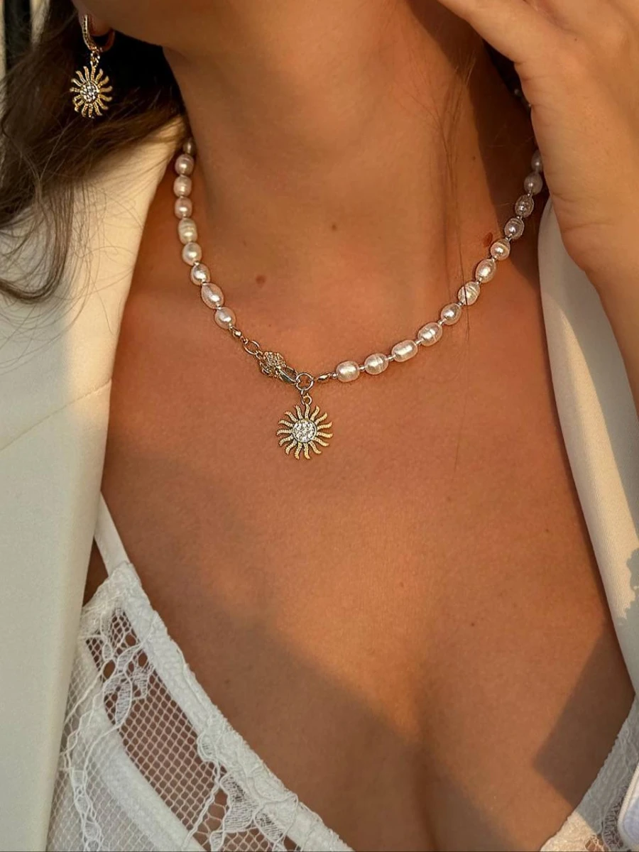 Це кольє - втілення сучасних трендів у ювелірній моді. Нестандартна форма, поєднання класичних перлів з ультрасучасним бісером та фіанітами, а також благородна позолота створюють унікальний образ. Кольє стане яскравим акцентом у вашому образі і підкреслить ваш вишуканий смак