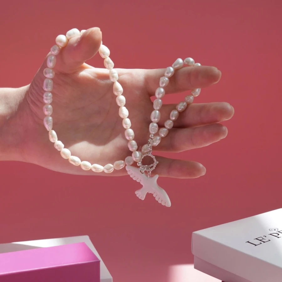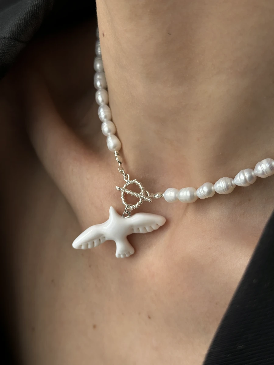 Кольє "Сяюча Eco" — стильна прикраса з еко перлин на основі медсплаву з покриттям із срібла. Застібка-тогл для ідеальної посадки. Унікальний дизайн з неідеальними перлинами, що підкреслює природну красу — частина серії Upcycle.
