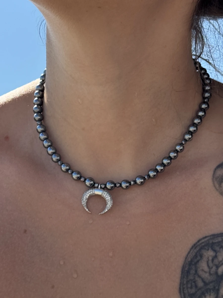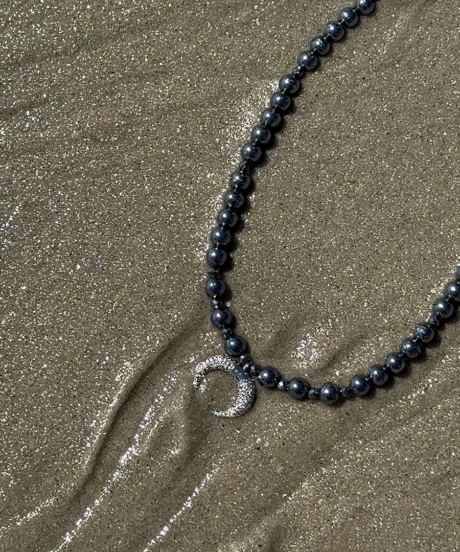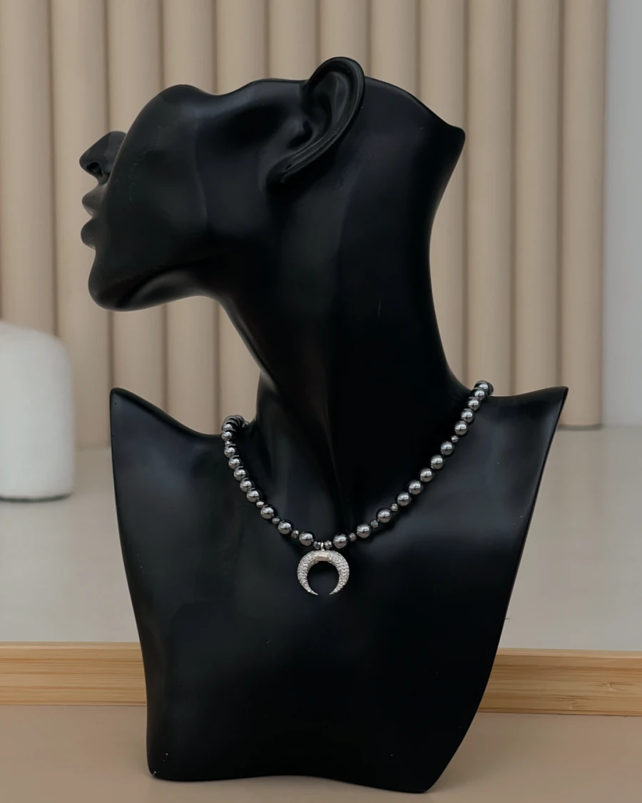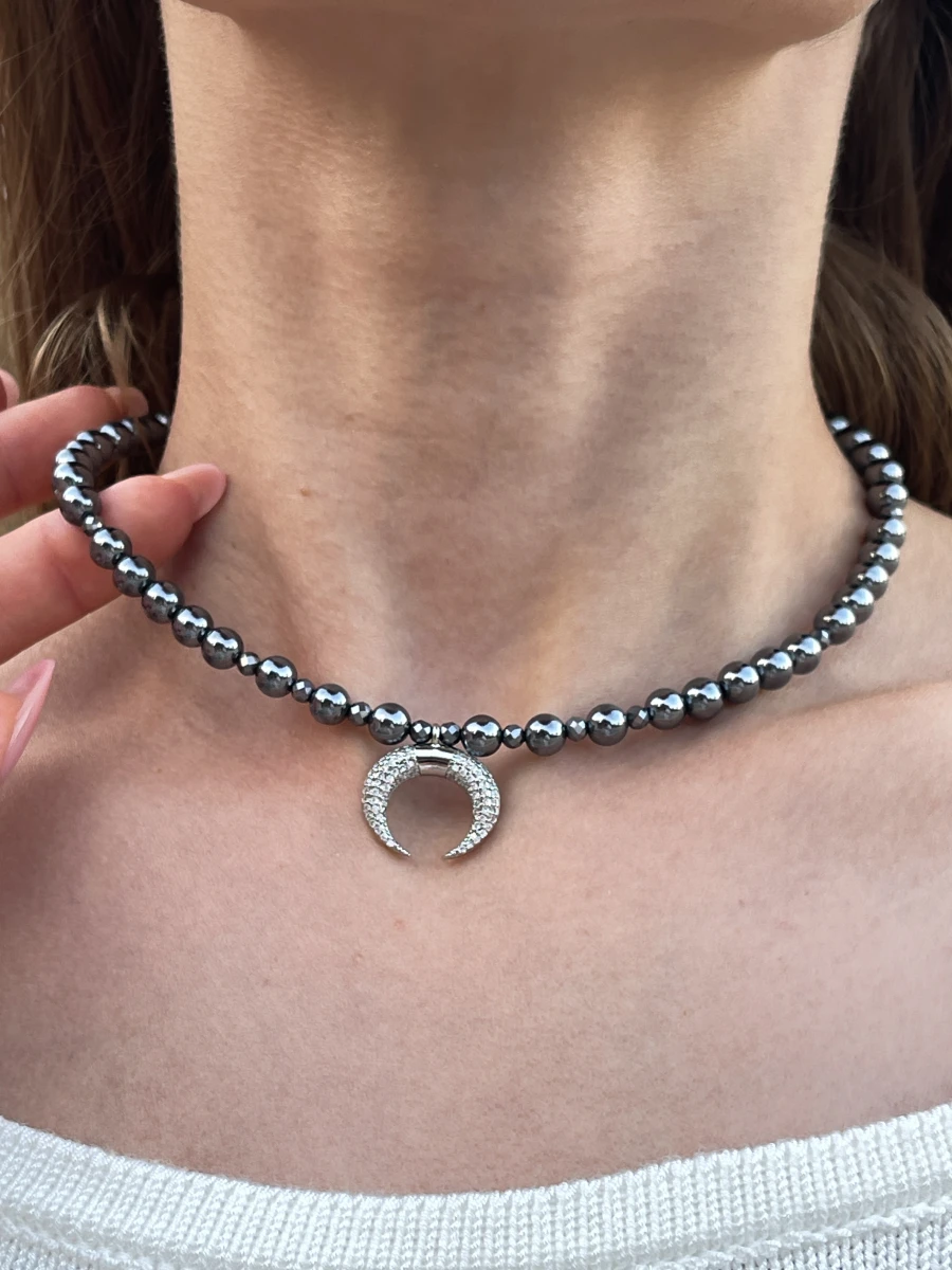 Терагерц — камінь з магічною силою. Місяць — символ ніжності й таємничості. Блискучий кулон і камінці — акценти на кожному русі. Застібка карабін у сріблі — зручність і стиль.