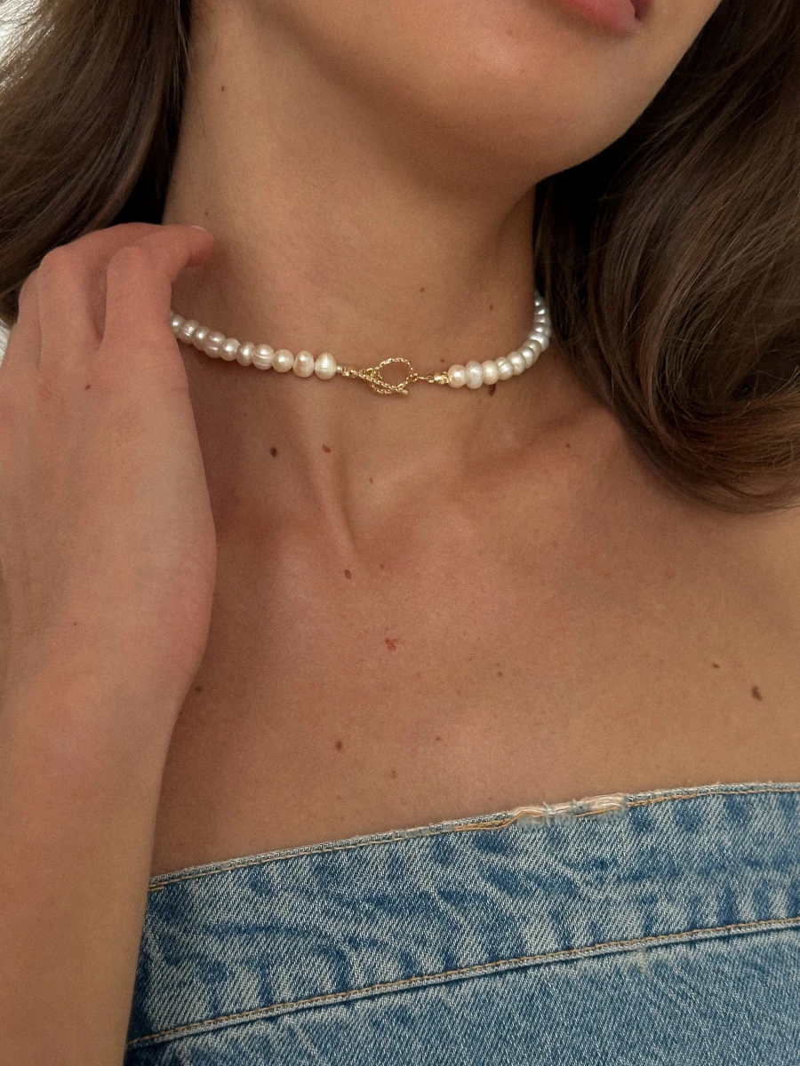 Кольє "Twisted" - це вишукана та елегантна прикраса, виготовлена з Високоякісних перлин, яка вразить ваші смаки і стиль.