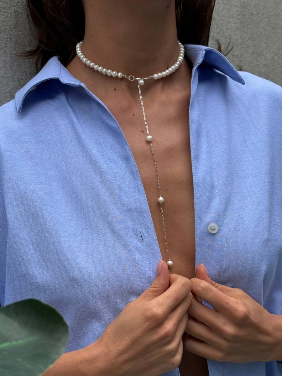 Кольє Two Ways - Елегантне кольє з перлами та срібним покриттям