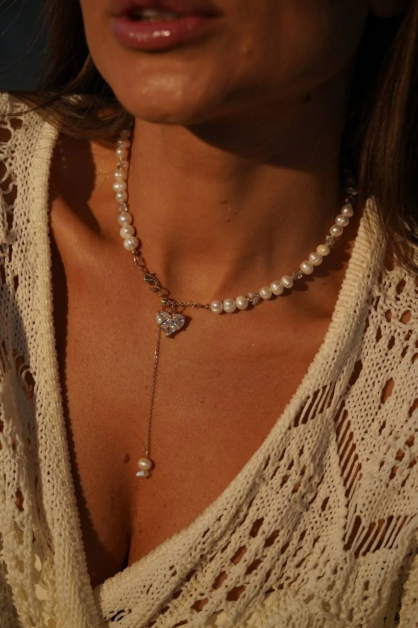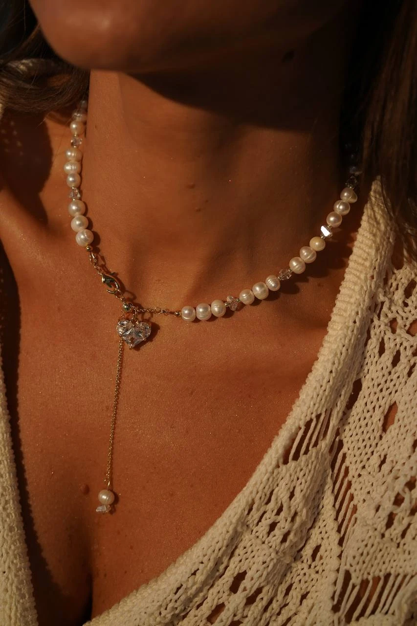 Це кольє - справжній шедевр ювелірного мистецтва! Витончені лінії з ювелірного скла, оброблені благородною позолотою, створюють основу для розкішного акценту - високоякісних перлів. Кожна перлина - це маленька морська таємниця, що сяє м'яким перламутром. Кольє поєднує в собі сучасний дизайн та класичну елегантність, стаючи універсальним аксесуаром для будь-якого образу.