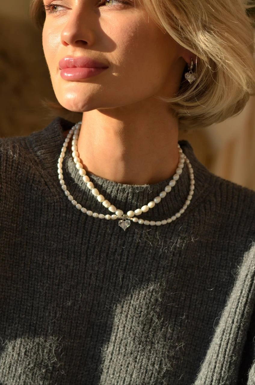 Елегантне кольє, виготовлене з ніжних перлів, вишуканого медсплаву зі срібним покриттям та сяючих фіанітів. Ідеальний аксесуар для створення витонченого образу на кожен день чи для особливих моментів.