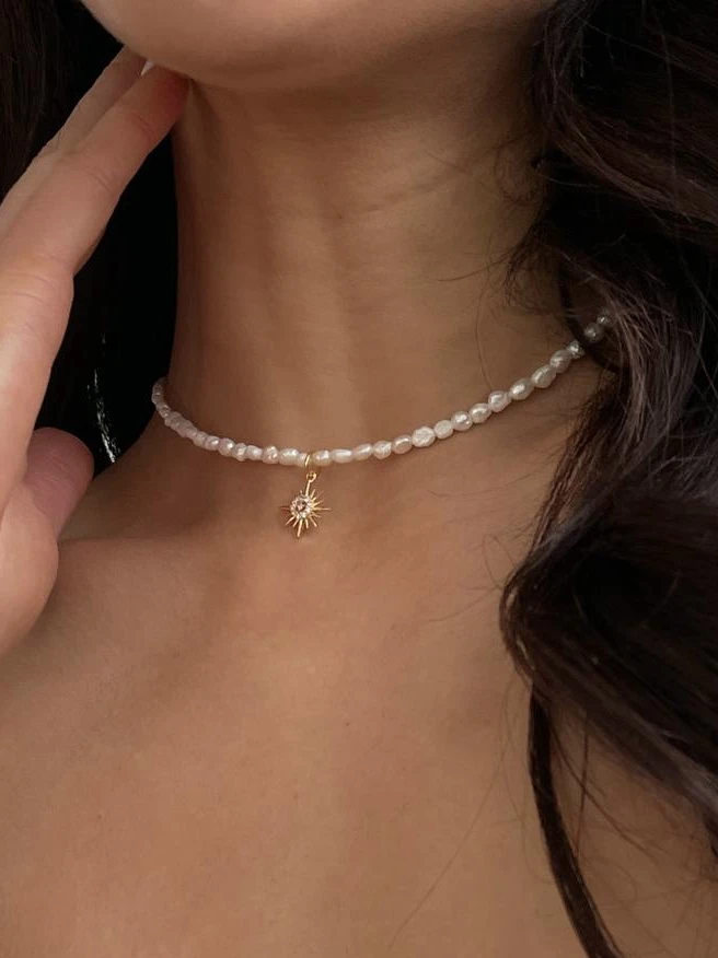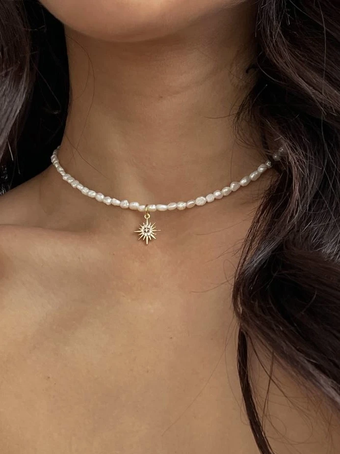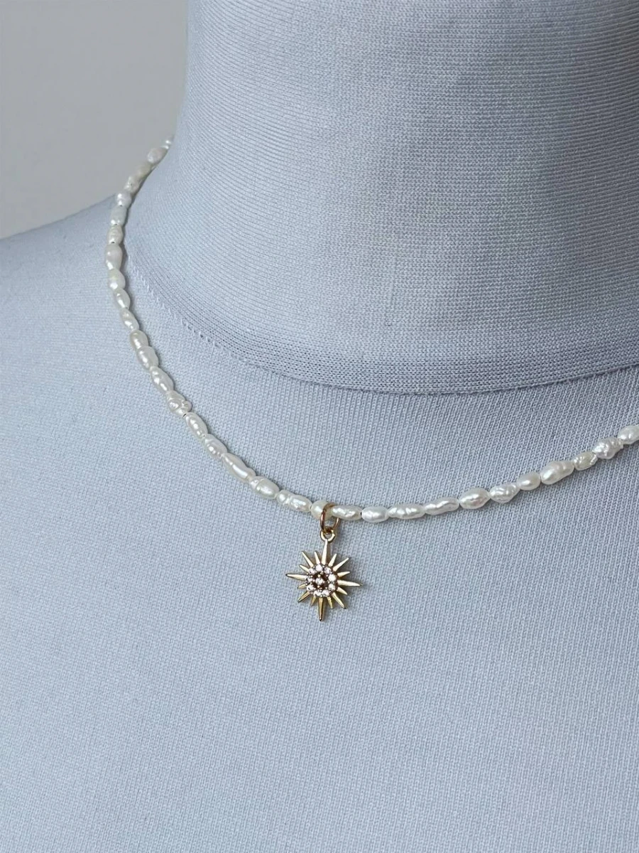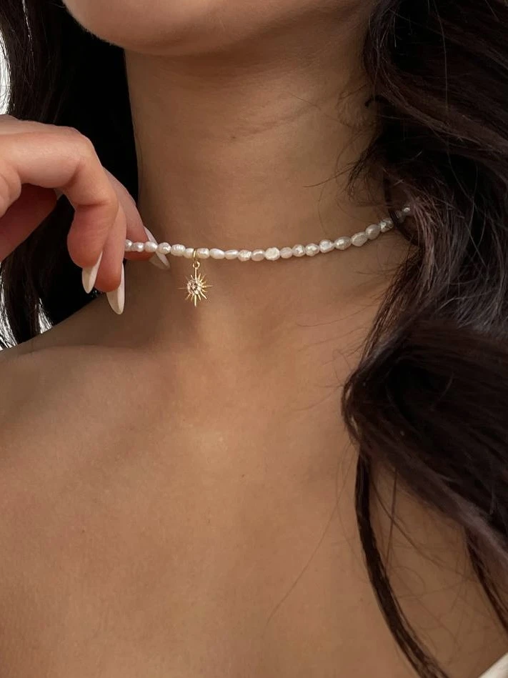 Кольє "Зірка" - це вишукана та неперевершена прикраса, яка поєднує в собі природну красу річкових перлів і магію кулона у вигляді зірки.