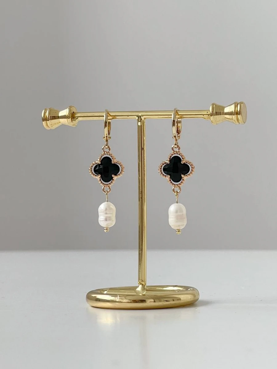 Сережки "Black Clover" - це виразний прикрасний аксесуар, який вражає своєю елегантністю та розкішшю. Вони виготовлені з високоякісної позолоти та мають застібку типу кільця, для надійного закріплення. Центральним елементом кожної сережки є прозорий фіаніт, що надає їм вишуканості та чарівної краси.