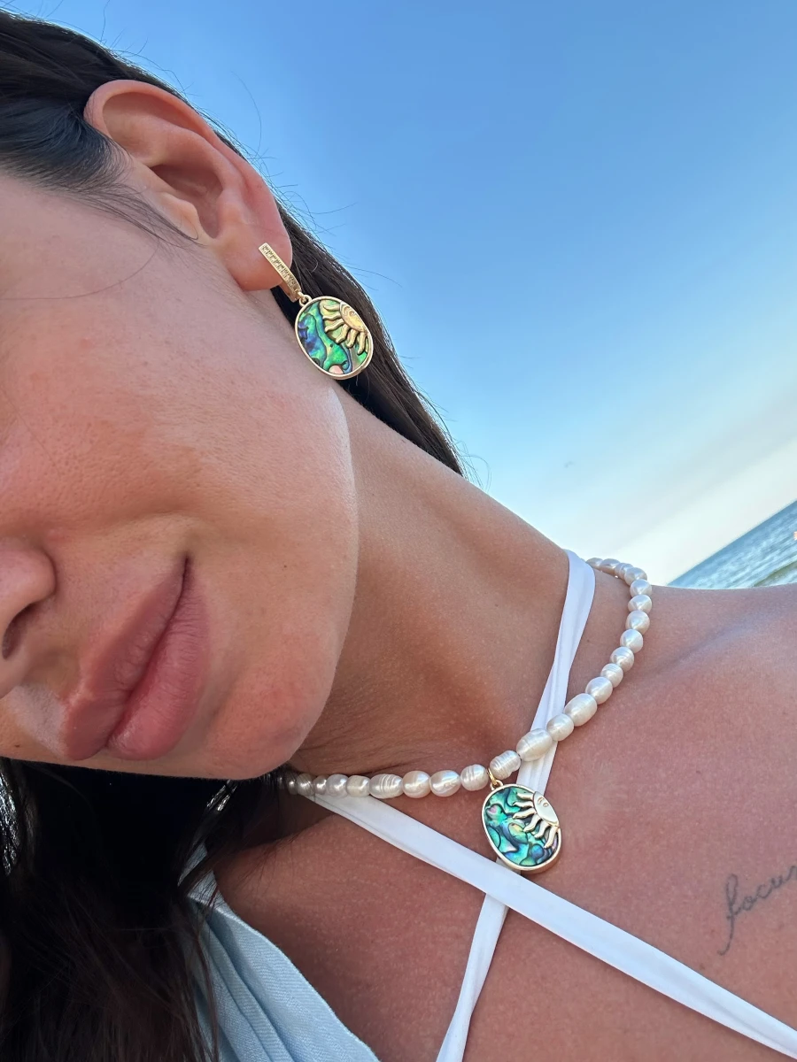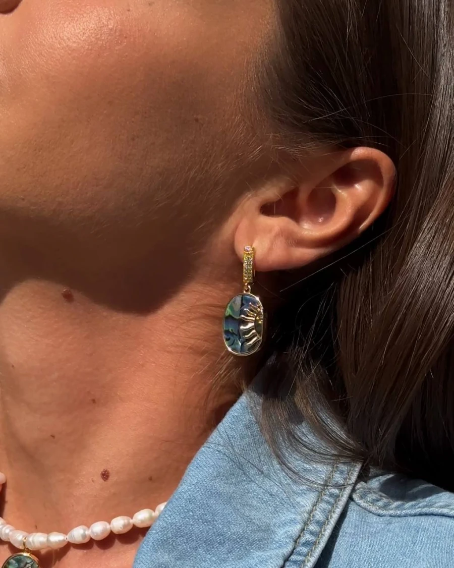 Ці вишукані сережки, виготовлені з емалі, медсплаву, позолоти та фіанітів, стануть справжньою родзинкою Вашого образу. Їхній елегантний дизайн у формі сонця підкреслить Вашу красу та жіночність, а сяйво фіанітів додасть Вам розкоші та блиску.