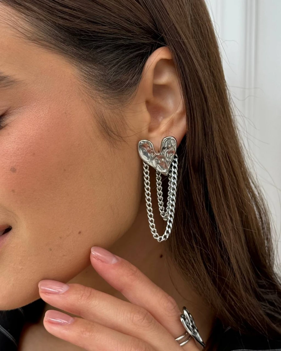 Підкресліть свою неповторність з витонченими сережками "Crazy Steel Love", виготовленими з медсплаву з срібним покриттям. Вони поєднують в собі елегантність, бунтарський дух та сяйво.
