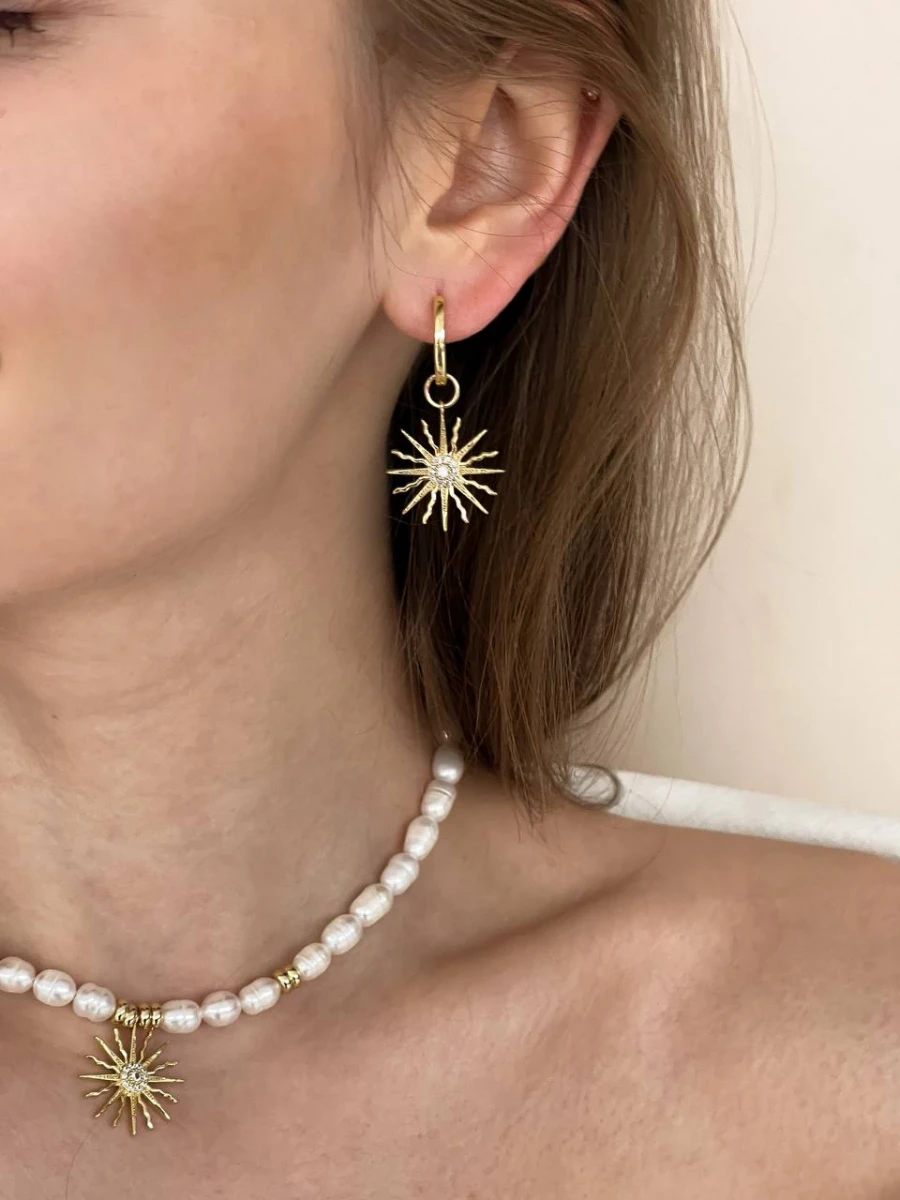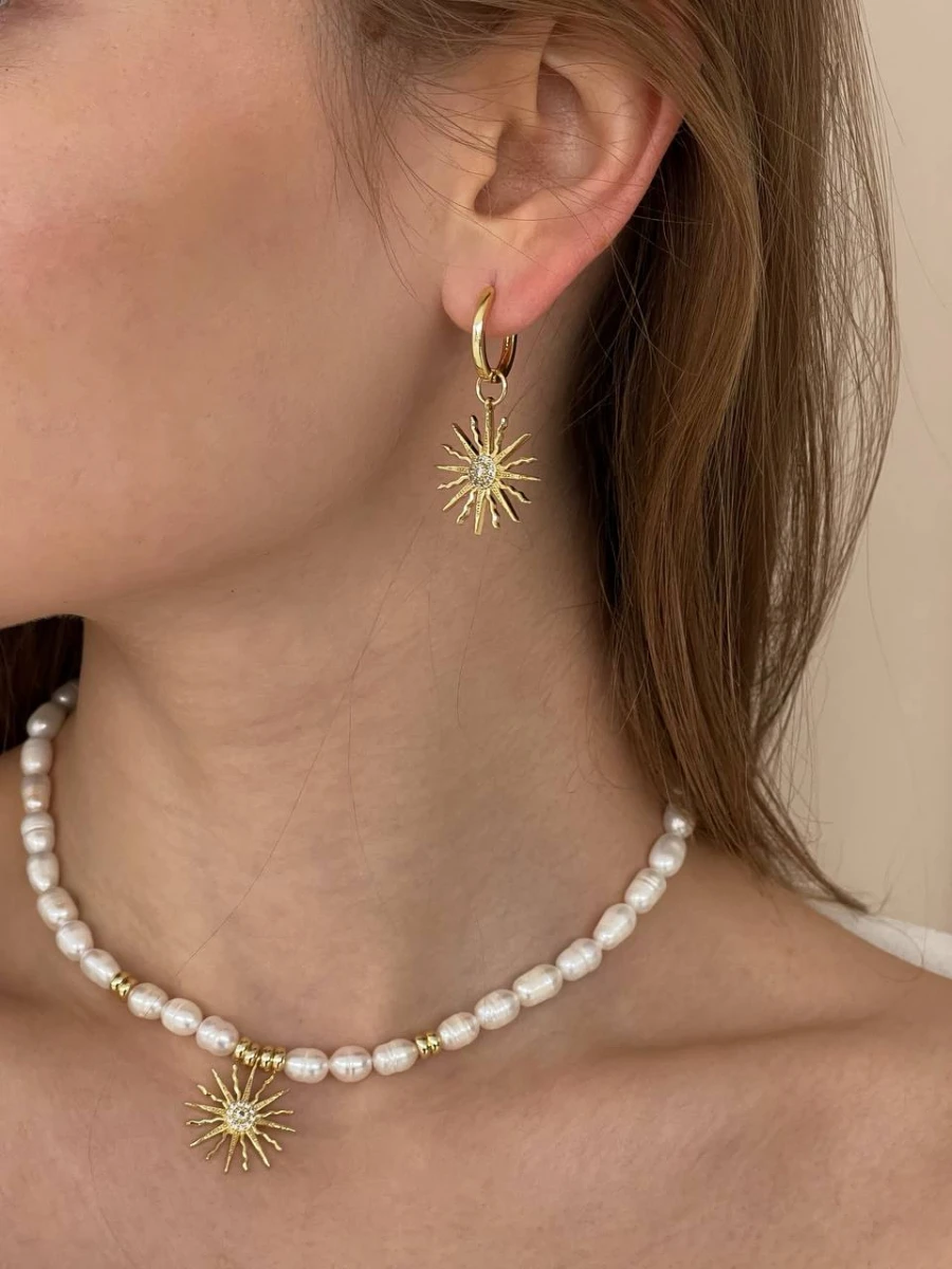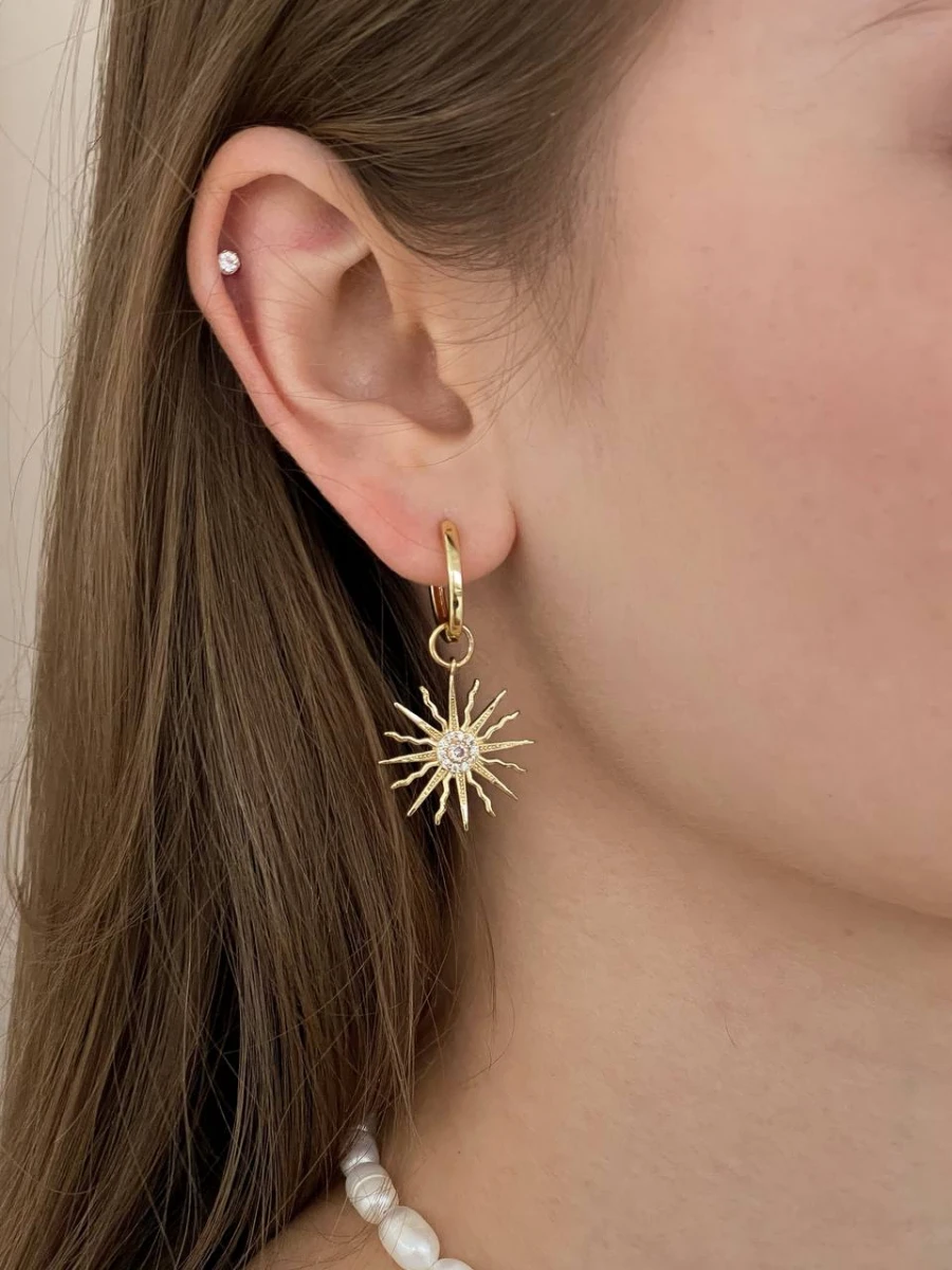 Сережки Divine Sun — це витончене поєднання блиску позолоти, медсплаву та іскристих фіанітів створює розкішний акцент для будь-якого образу. Ідеальний вибір для тих, хто цінує елегантність і яскраві деталі.