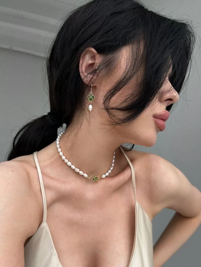 Прикраса доповнена натуральними перлами, які надають сережкам ніжності та романтичного шарму. Сережки "Emerald" ідеально підходять для важливих подій та особливих вечірок, де ви бажаєте привернути увагу своєю неперевершеною внутрішньою красою та стилем. Ця прикраса стане чудовим доповненням до вашого образу і подарує вам почуття розкоші та впевненості.