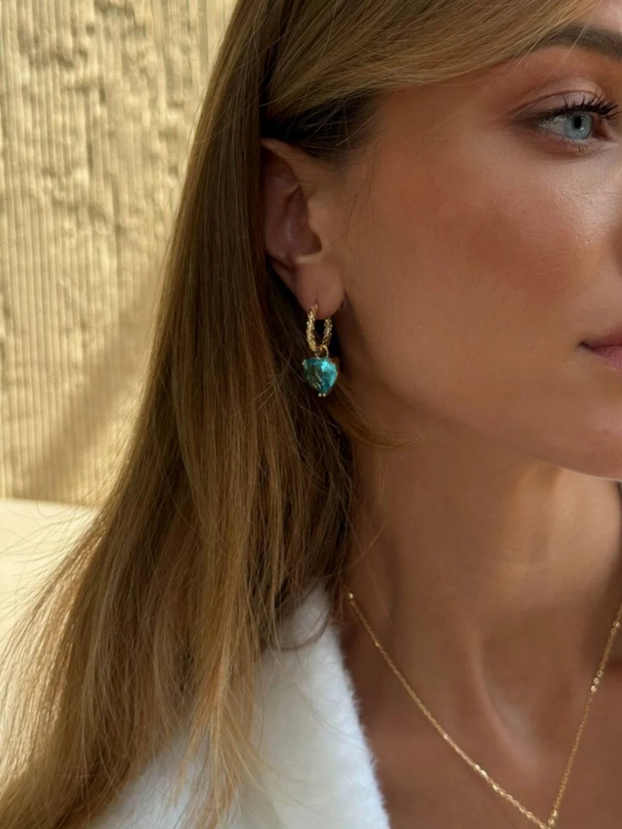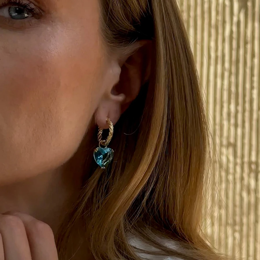 Ці сережки — вишукане поєднання елегантності та ніжності. Кулон у формі сердечка, прикрашений сяйливим фіанітом небесно-блакитного відтінку, дарує образу легкість і романтику. Позолота додає тепла та витонченого блиску, підкреслюючи красу прикраси.