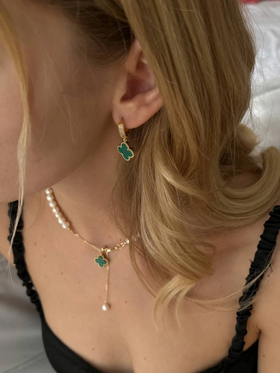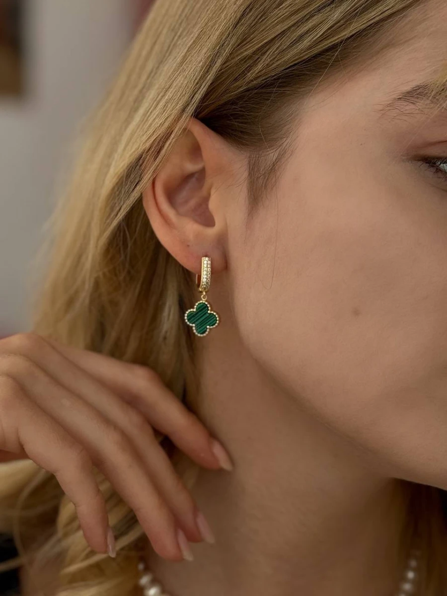 "Green Lilly" - це витончені сережки, які підкорять вас своїм елегантним дизайном та бездоганною якістю. Вони виготовлені з медсплаву, позолоти, емалі та фіанітів, що робить їх не лише красивими, але й довговічними.